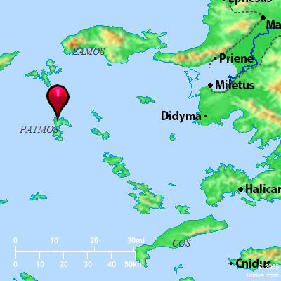 Atlas ![]() Patmos and surrounding area Maps Created using Biblemapper 3.0 Additional data from OpenBible.info You are free to use up to 50 Biblos coprighted maps (small or large) for your website or presentation. Please credit Biblos.com. Occurrences Revelation 1:1 This is the Revelation of Jesus Christ, which God gave him to show to his servants the things which must happen soon, which he sent and made known by his angel to his servant, John,Revelation 1:4 John, to the seven assemblies that are in Asia: Grace to you and peace, from God, who is and who was and who is to come; and from the seven Spirits who are before his throne; Revelation 1:9 I John, your brother and partner with you in oppression, Kingdom, and perseverance in Christ Jesus, was on the isle that is called Patmos because of God's Word and the testimony of Jesus Christ. Revelation 20:8 and he will come out to deceive the nations which are in the four corners of the earth, Gog and Magog, to gather them together to the war; the number of whom is as the sand of the sea. Encyclopedia PATMOS