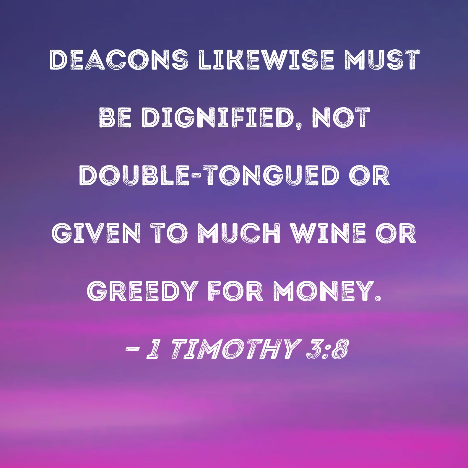 1 Timothy 3:8 Deacons likewise must be dignified, not double-tongued or given to much wine or greedy for money.