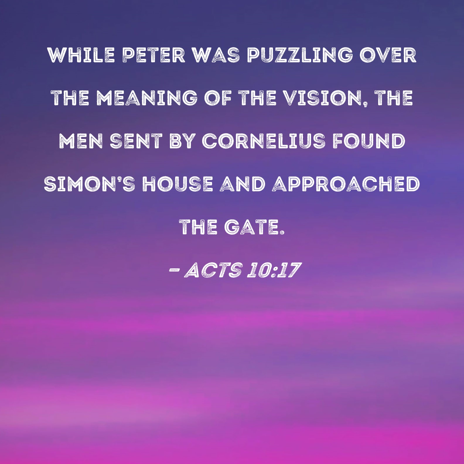 Acts 10:17 While Peter was puzzling over the meaning of the vision, the men sent by Cornelius found Simon's house and approached the gate.