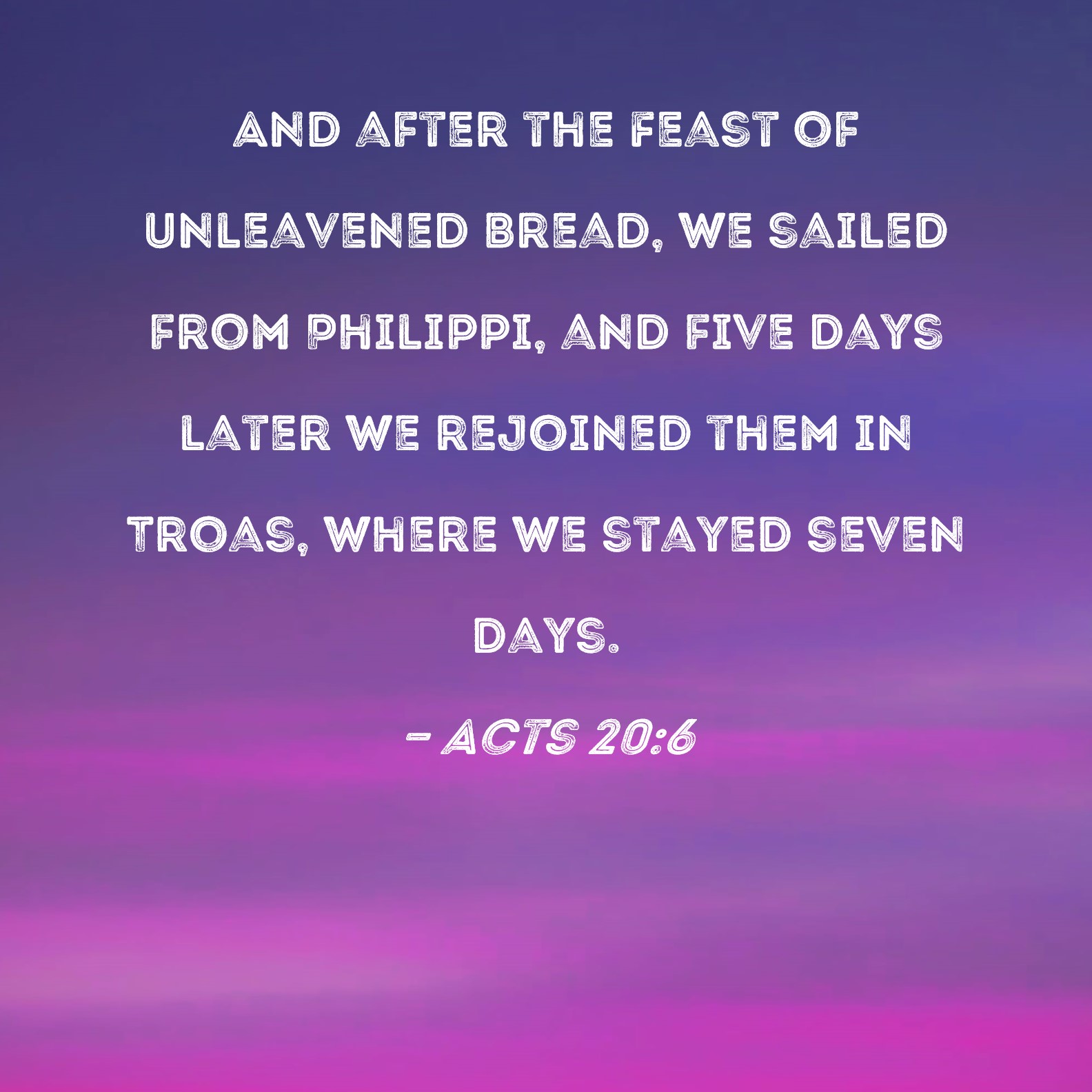 KJV:  And we sailed away from Philippi after the days of unleavened bread, and came unto them to Troas in five days; where we abode seven days.