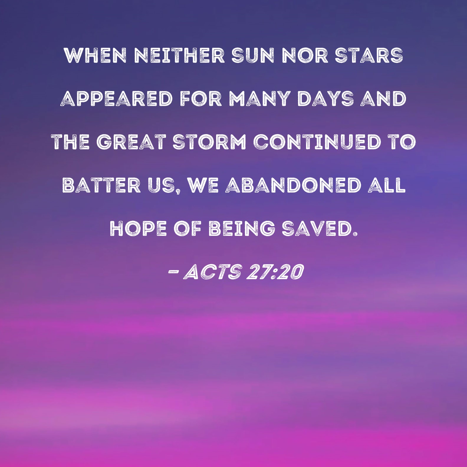 Acts 27:20 When neither sun nor stars appeared for many days and the great storm continued to batter us, we abandoned all hope of being saved.