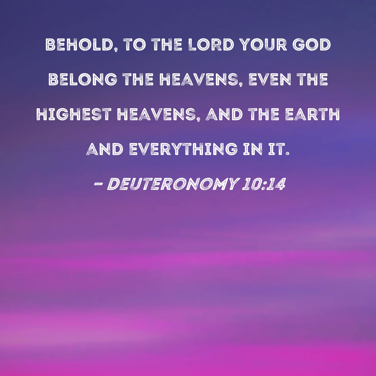 Deuteronomy 10:14 Behold, to the LORD your God belong the heavens, even the highest heavens, and the earth and everything in it.