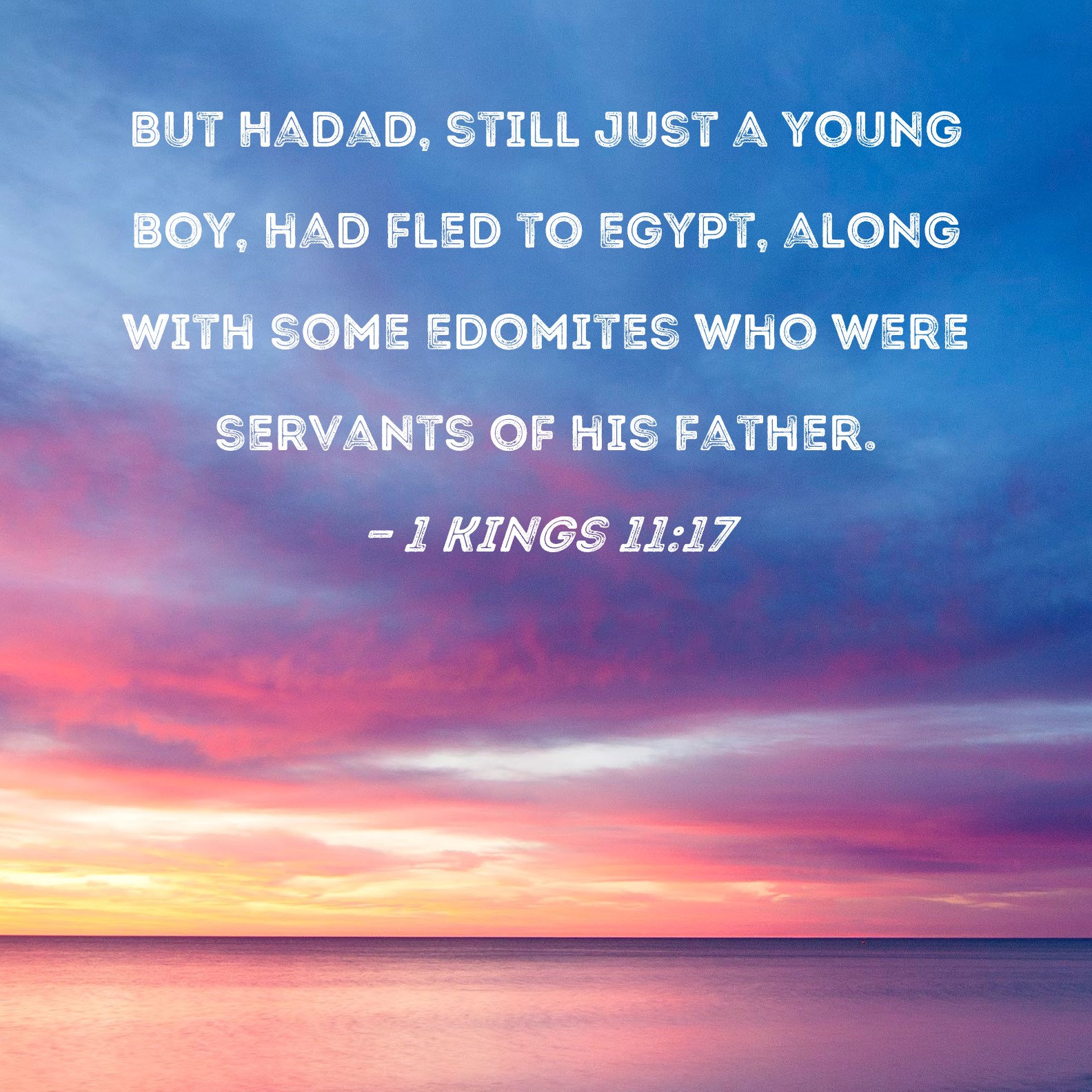 1 Kings 11:17 But Hadad, still just a young boy, had fled to Egypt, along with some Edomites who were servants of his father.