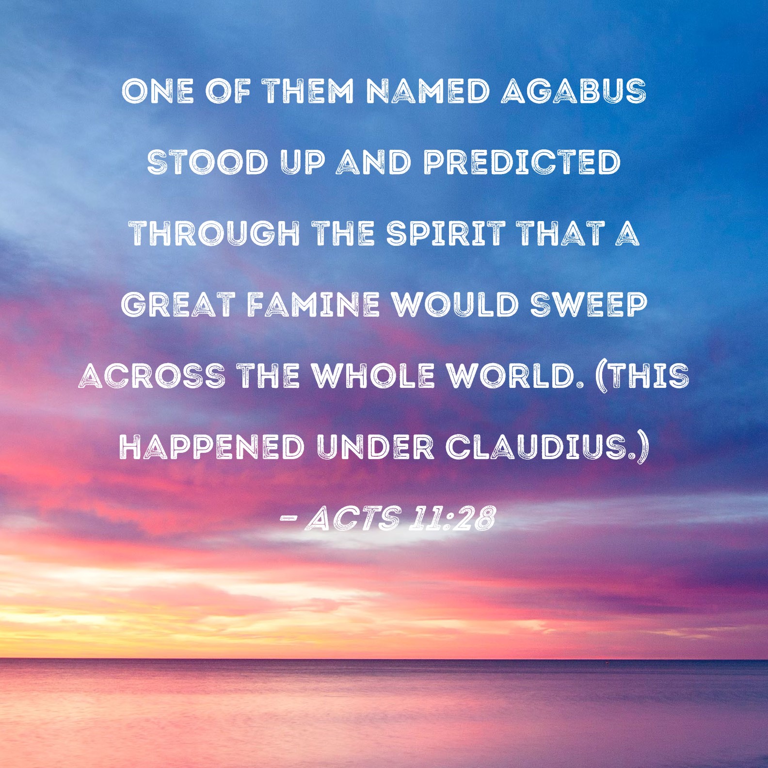 Acts 11:28 One of them named Agabus stood up and predicted through the Spirit that a great famine would sweep across the whole world. (This happened under Claudius.)