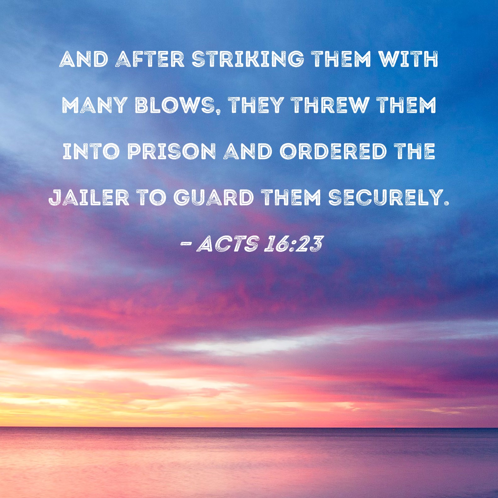 Acts 16:23 And after striking them with many blows, they threw them into prison and ordered the jailer to guard them securely.