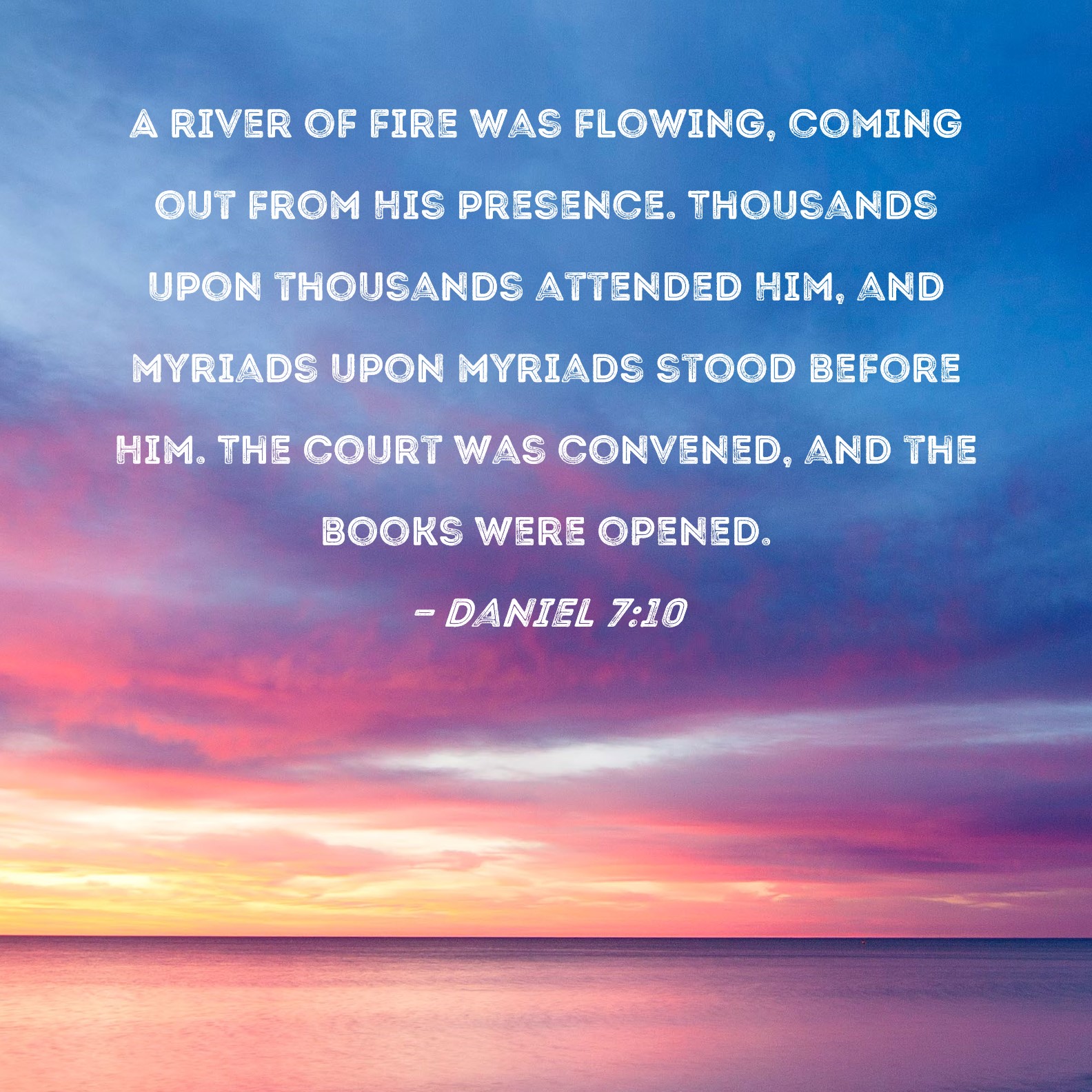 Daniel 7:10 A river of fire was flowing, coming out from His presence. Thousands upon thousands attended Him, and myriads upon myriads stood before Him. The court was convened, and the books were opened.
