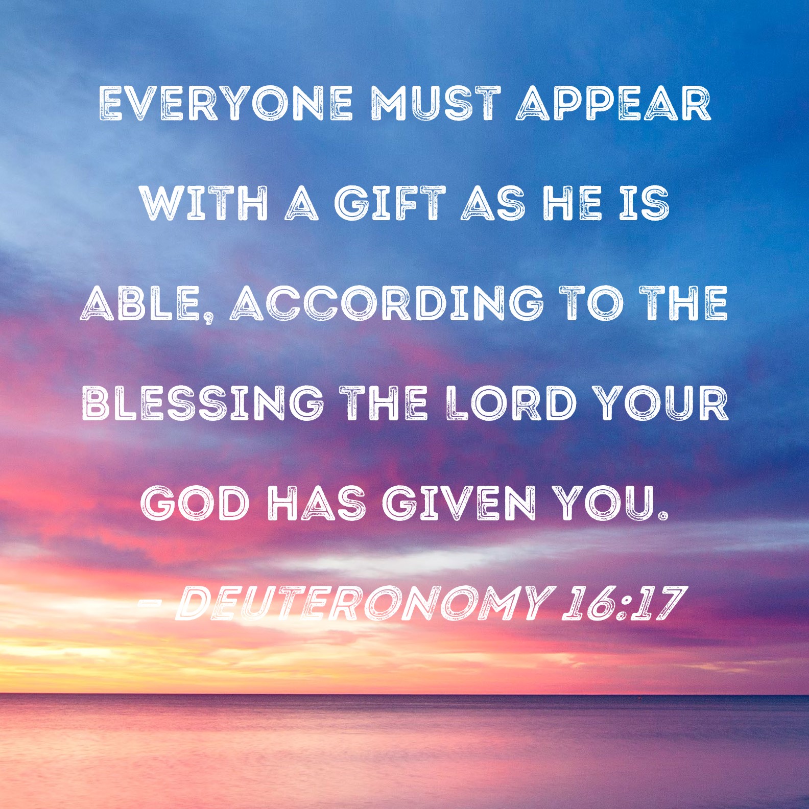 Deuteronomy 16:17 Everyone must appear with a gift as he is able, according to the blessing the LORD your God has given you.