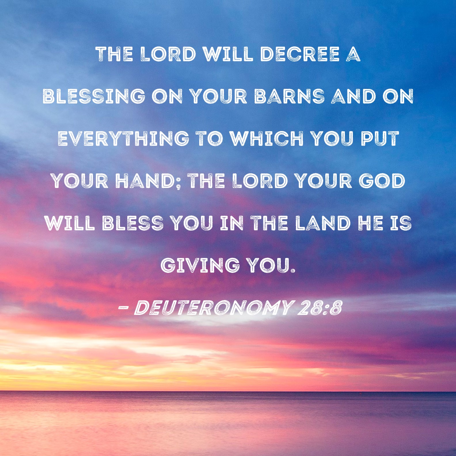 Deuteronomy 28:8 The LORD will decree a blessing on your barns and on everything to which you put your hand; the LORD your God will bless you in the land He is giving you.