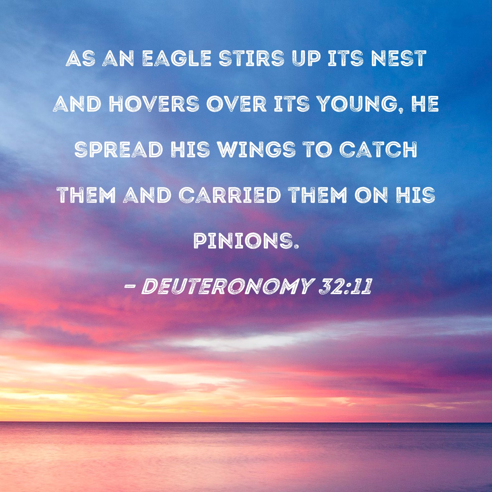 Deuteronomy 32:11 As an eagle stirs up its nest and hovers over its young, He spread His wings to catch them and carried them on His pinions.
