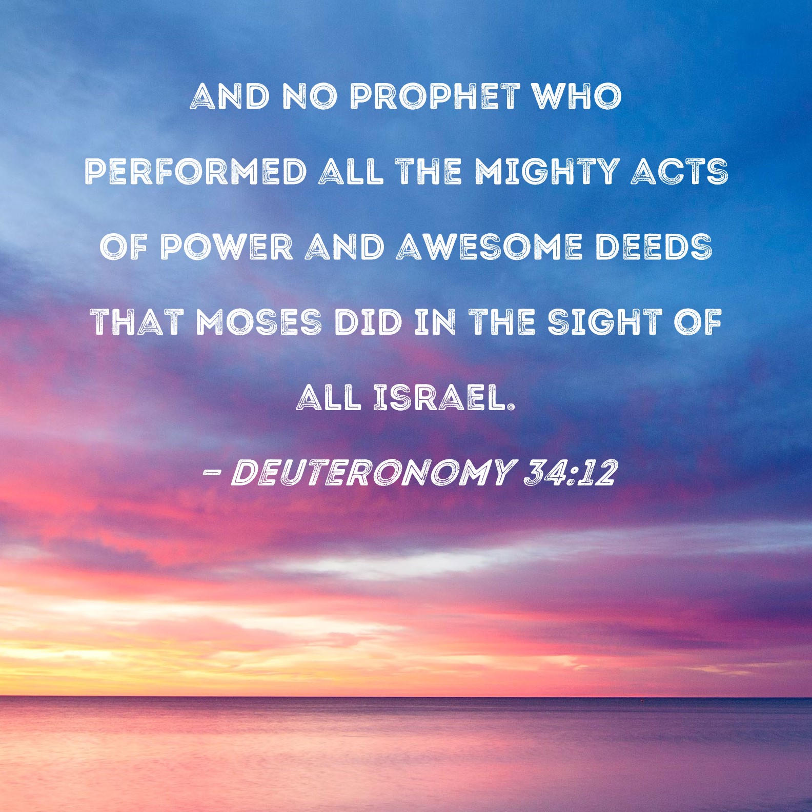 Deuteronomy 34:12 and no prophet who performed all the mighty acts of power and awesome deeds that Moses did in the sight of all Israel.