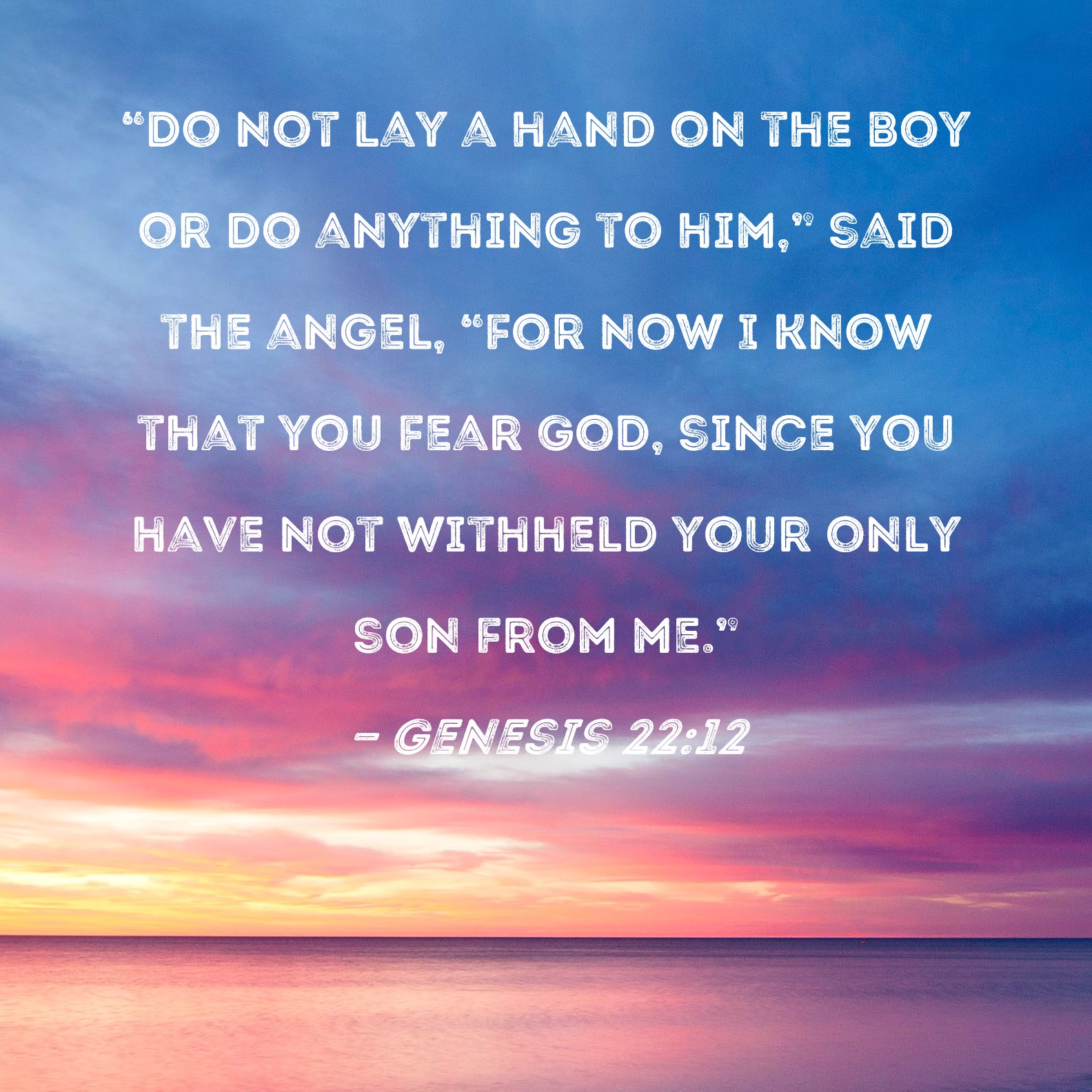 Genesis 22:12 "Do not lay a hand on the boy or do anything to him," said the angel, "for now I know that you fear God, since you have not withheld your only son from me."