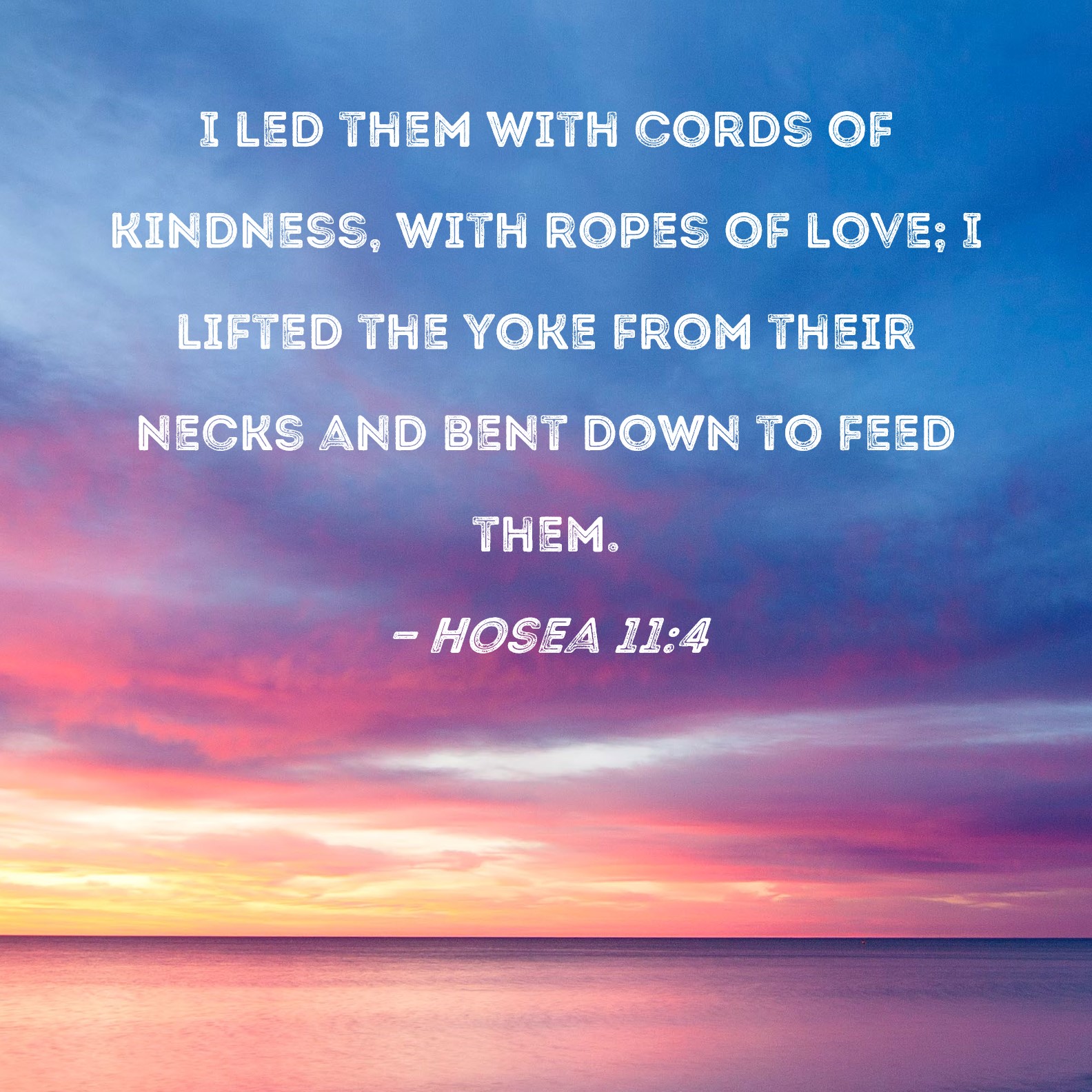 Hosea 11:4 I led them with cords of kindness, with ropes of love; I lifted the yoke from their necks and bent down to feed them.