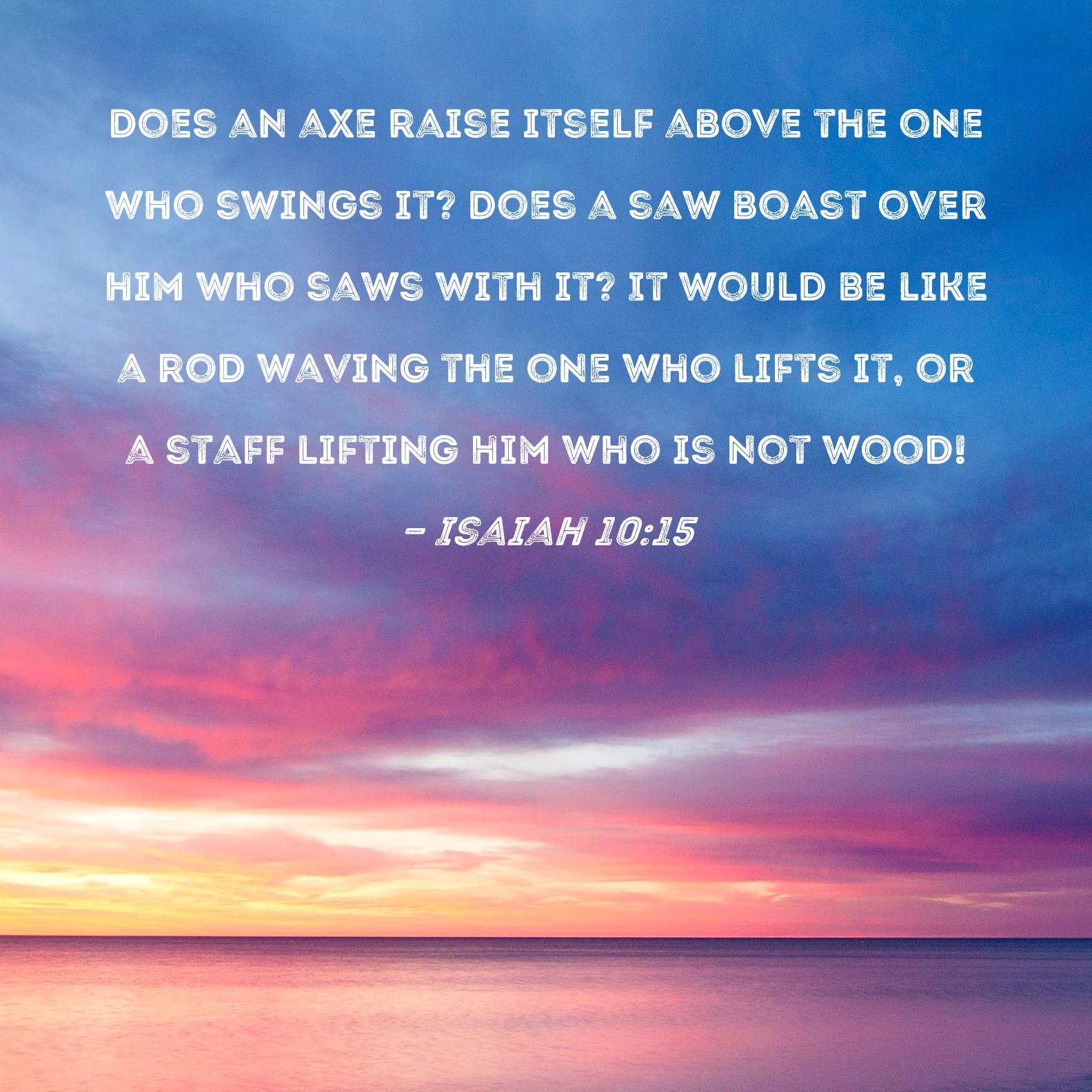 Isaiah 10:15 Does an axe raise itself above the one who swings it? Does a saw boast over him who saws with it? It would be like a rod waving the one who lifts it, or a staff lifting him who is not wood!