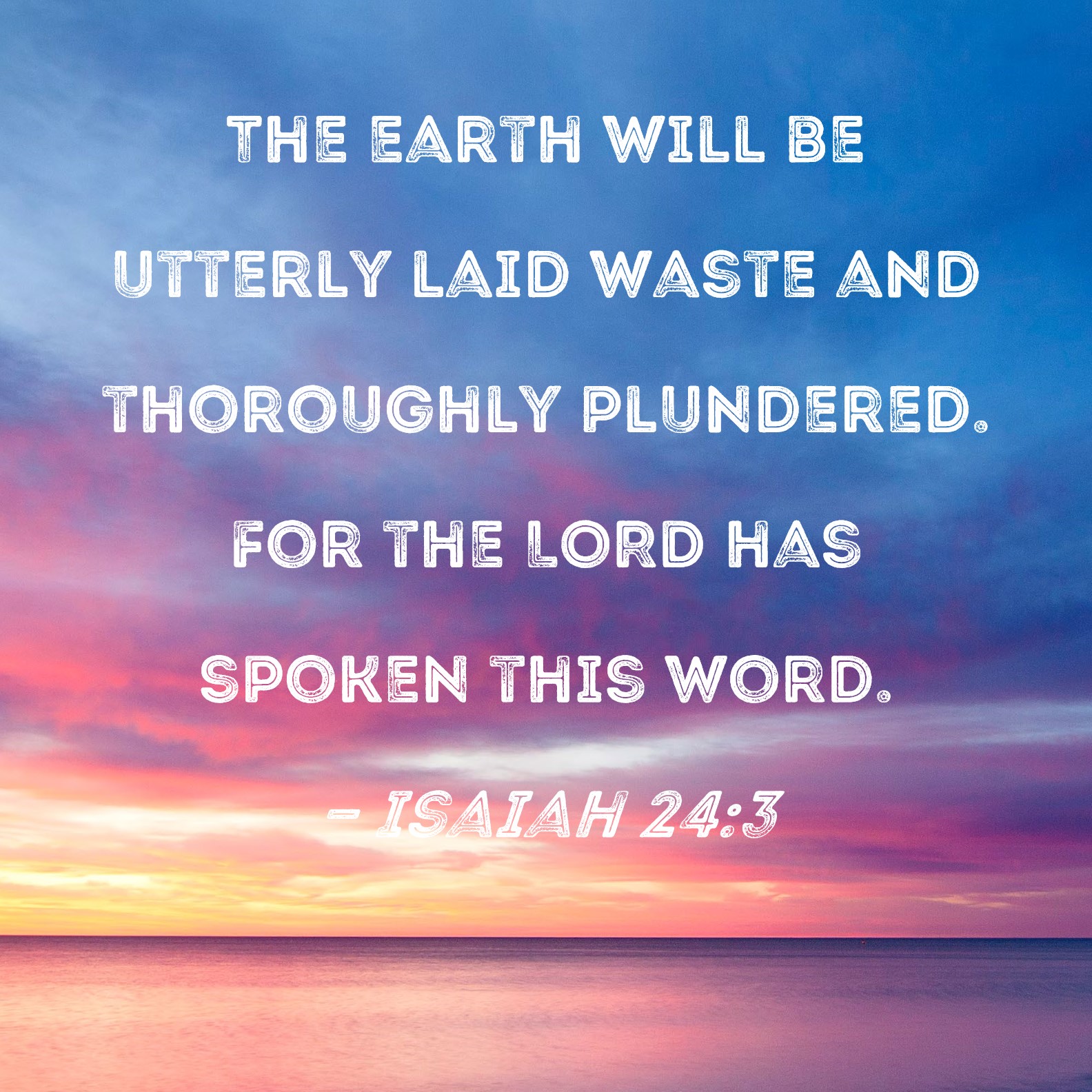 Isaiah 24:3 The earth will be utterly laid waste and thoroughly plundered. For the LORD has spoken this word.