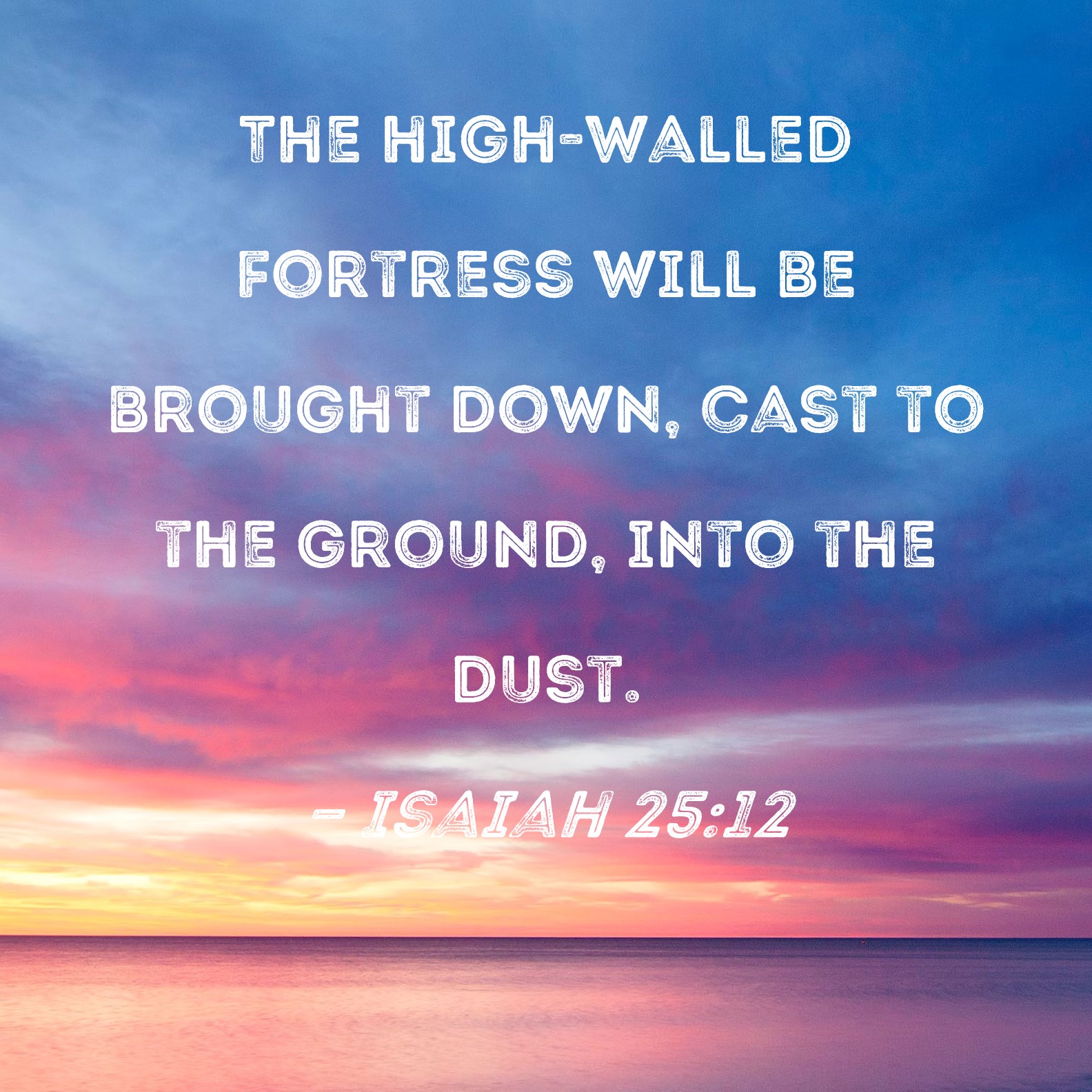 Isaiah 25:12 The high-walled fortress will be brought down, cast to the ground, into the dust.