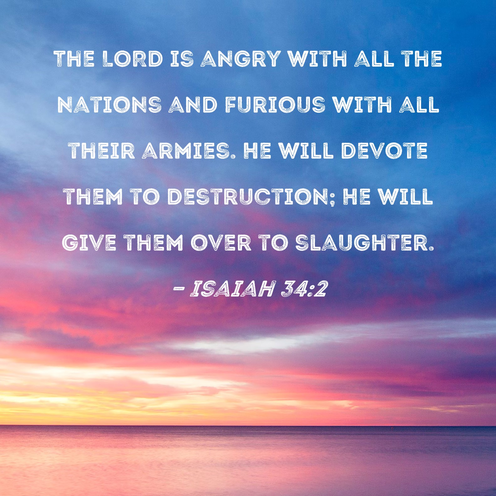 Isaiah 34:2 The LORD is angry with all the nations and furious with all their armies. He will devote them to destruction; He will give them over to slaughter.