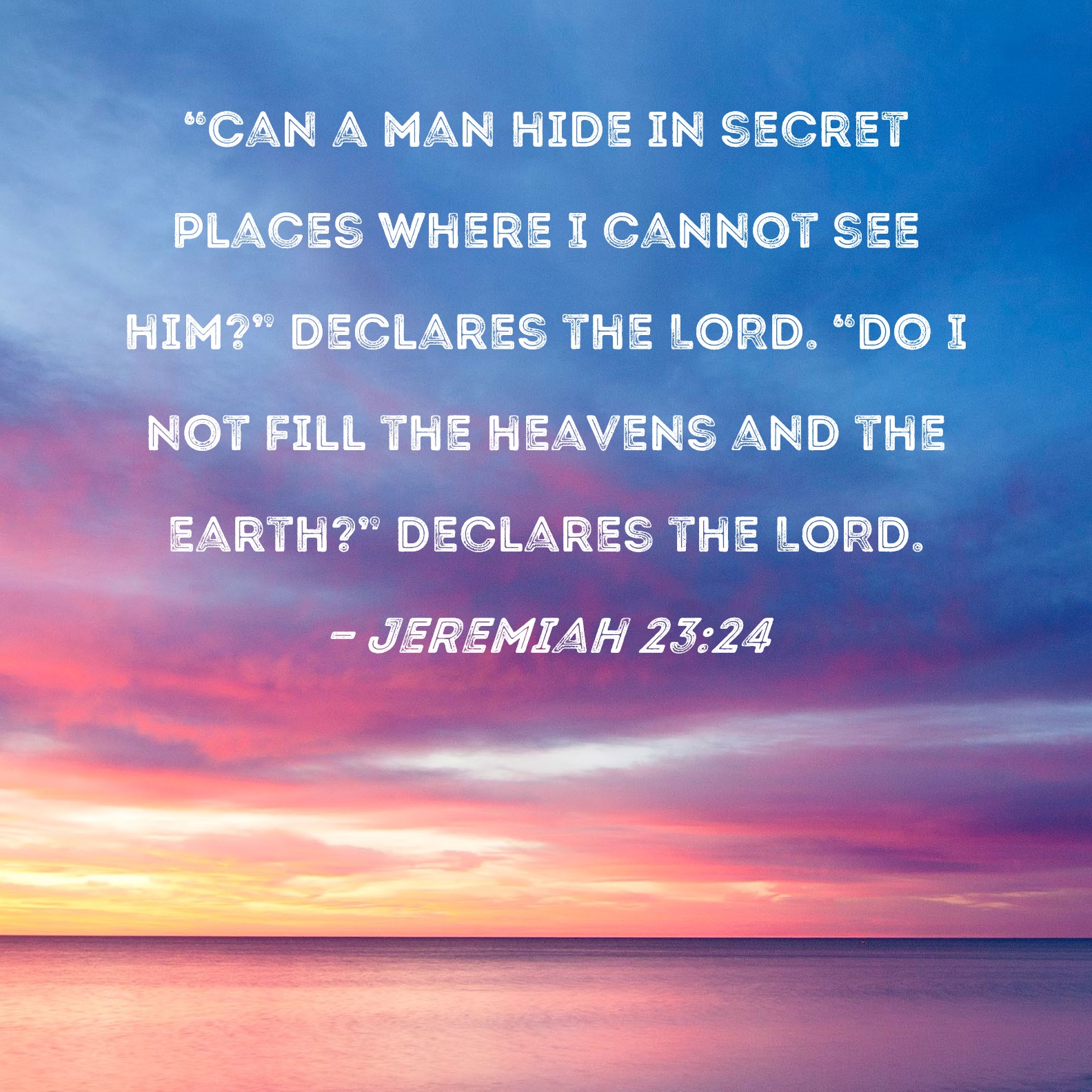 Jeremiah 23:24 "Can a man hide in secret places where I cannot see him?" declares the LORD. "Do I not fill the heavens and the earth?" declares the LORD.