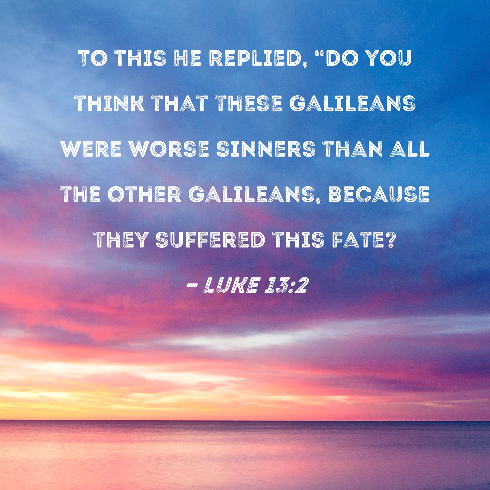 Luke 13:2 To this He replied, "Do you think that these Galileans were worse sinners than all the other Galileans, because they suffered this fate?