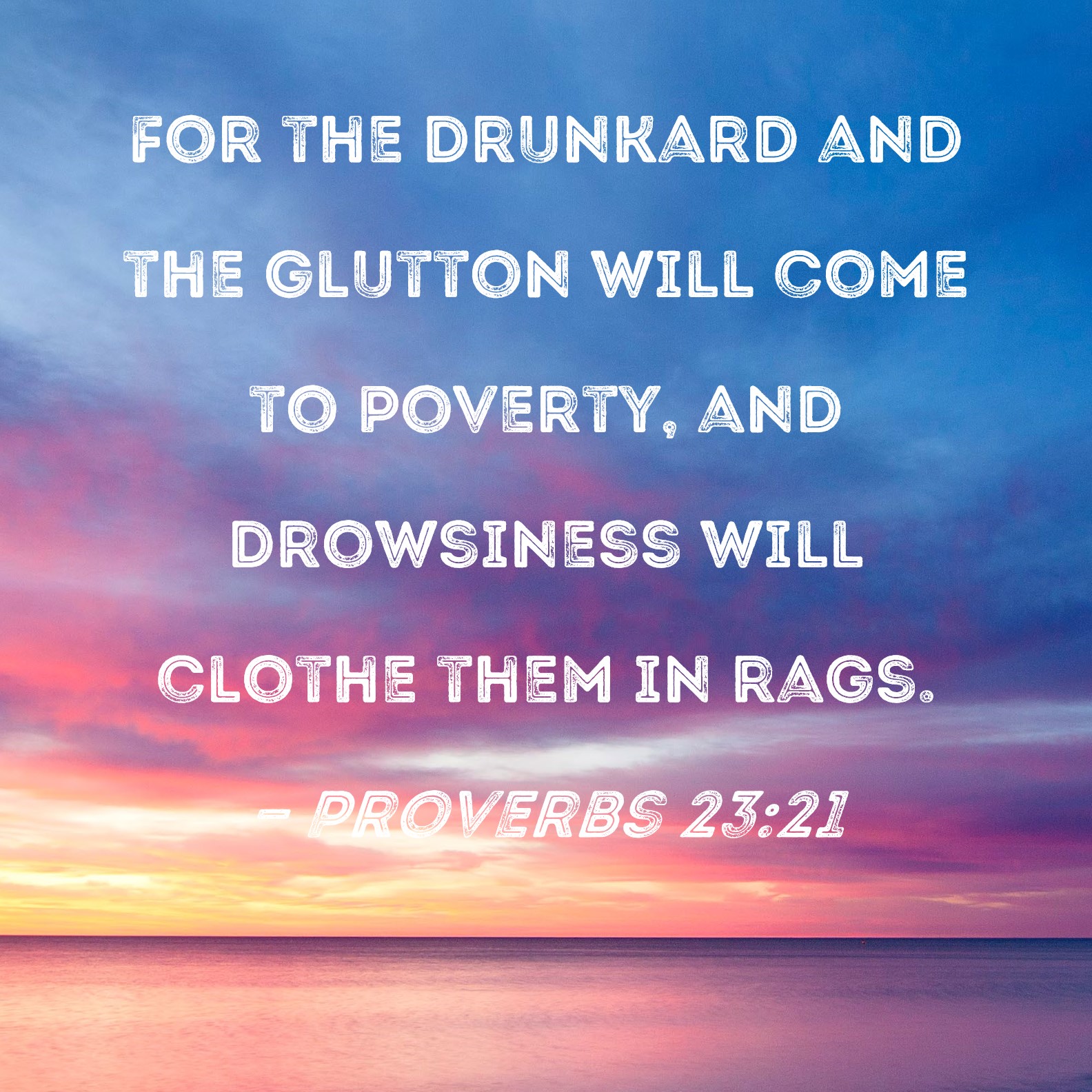 Proverbs 23:21 For the drunkard and the glutton will come to poverty, and drowsiness will clothe them in rags.