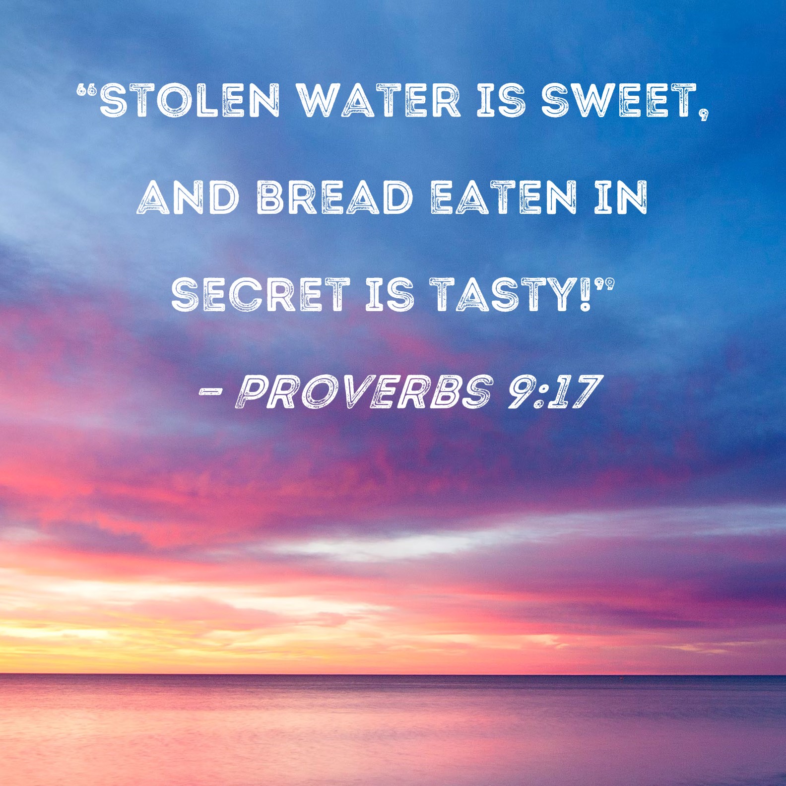 Proverbs 9:17 "Stolen water is sweet, and bread eaten in secret is tasty!"