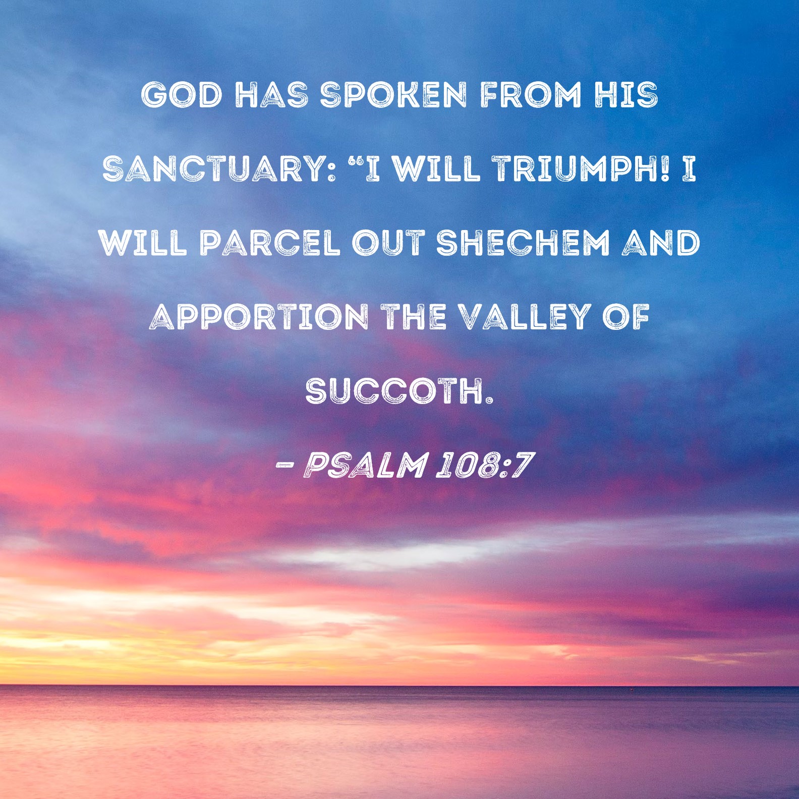 Psalm 108:7 God has spoken from His sanctuary: "I will triumph! I will parcel out Shechem and apportion the Valley of Succoth.