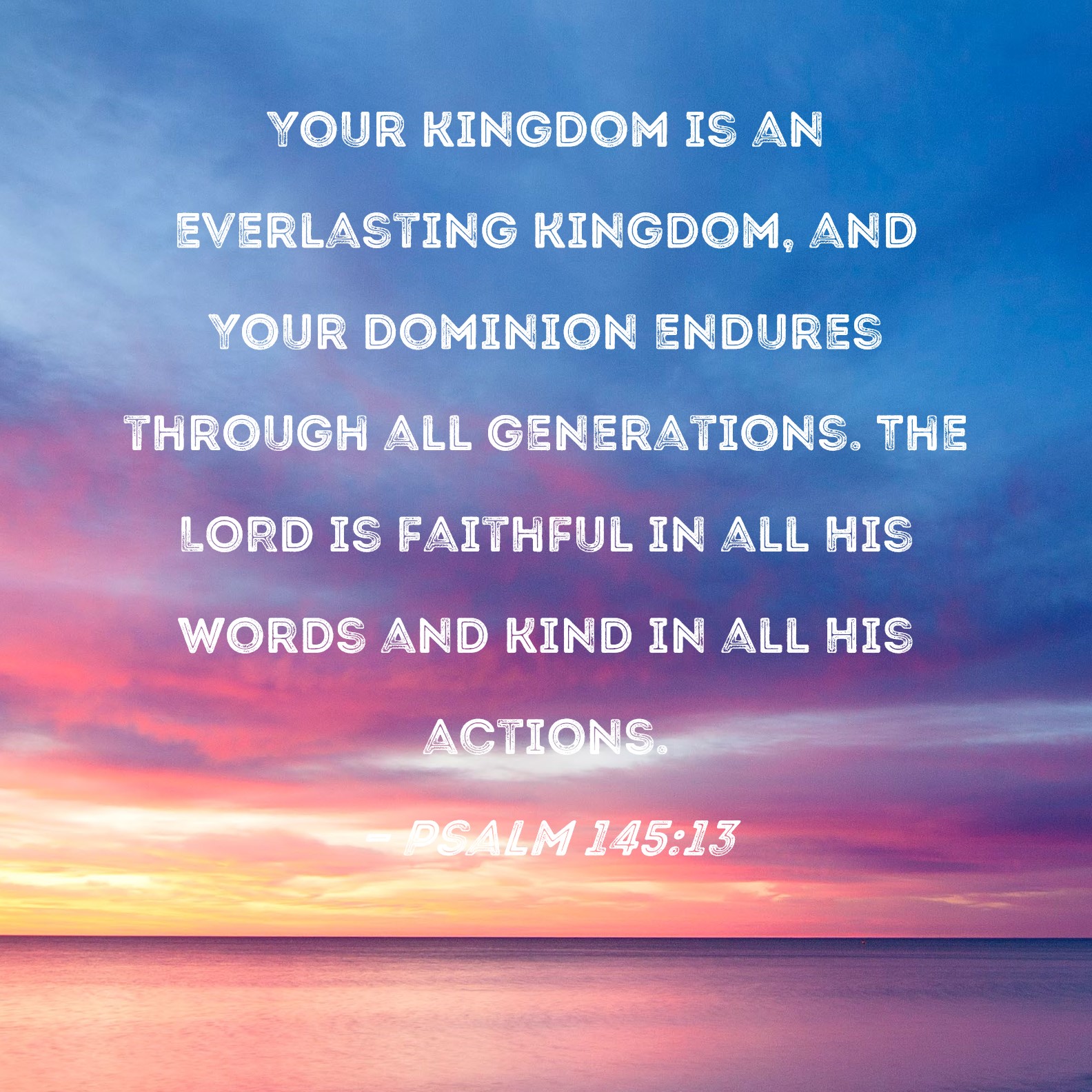 Psalm 145:13 Your kingdom is an everlasting kingdom, and Your dominion endures through all generations. The LORD is faithful in all His words and kind in all His actions.