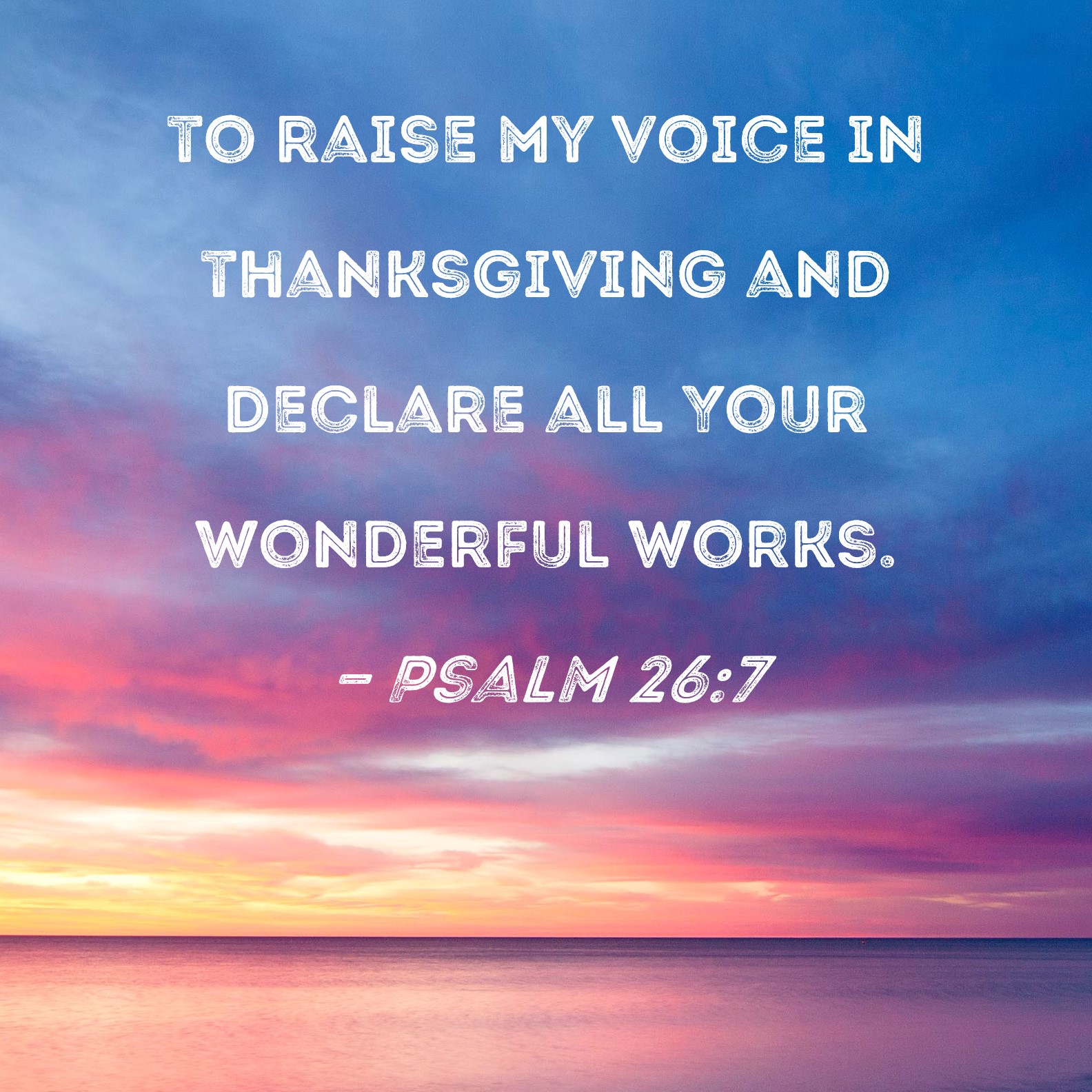 Psalm 26:7 to raise my voice in thanksgiving and declare all Your wonderful works.