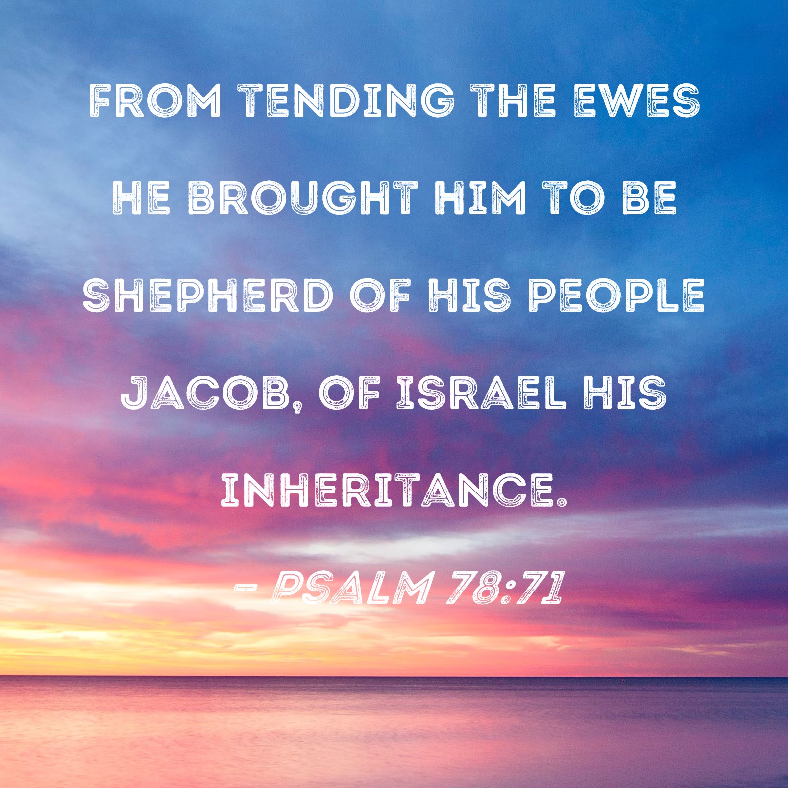 Psalm 78:71 from tending the ewes He brought him to be shepherd of His people Jacob, of Israel His inheritance.