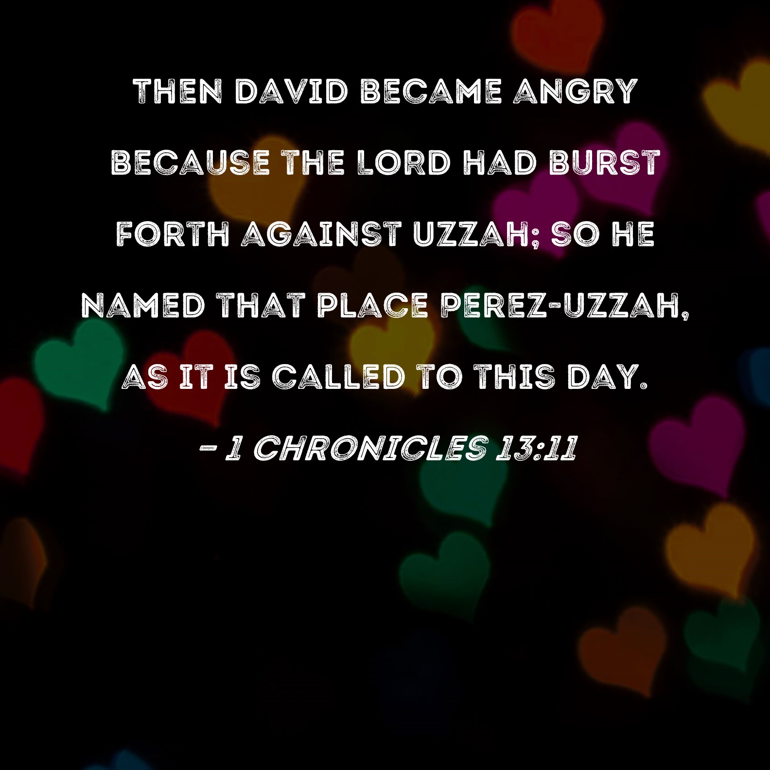 1 Chronicles 13:11 Then David became angry because the LORD had burst forth against Uzzah; so he named that place Perez-uzzah, as it is called to this day.