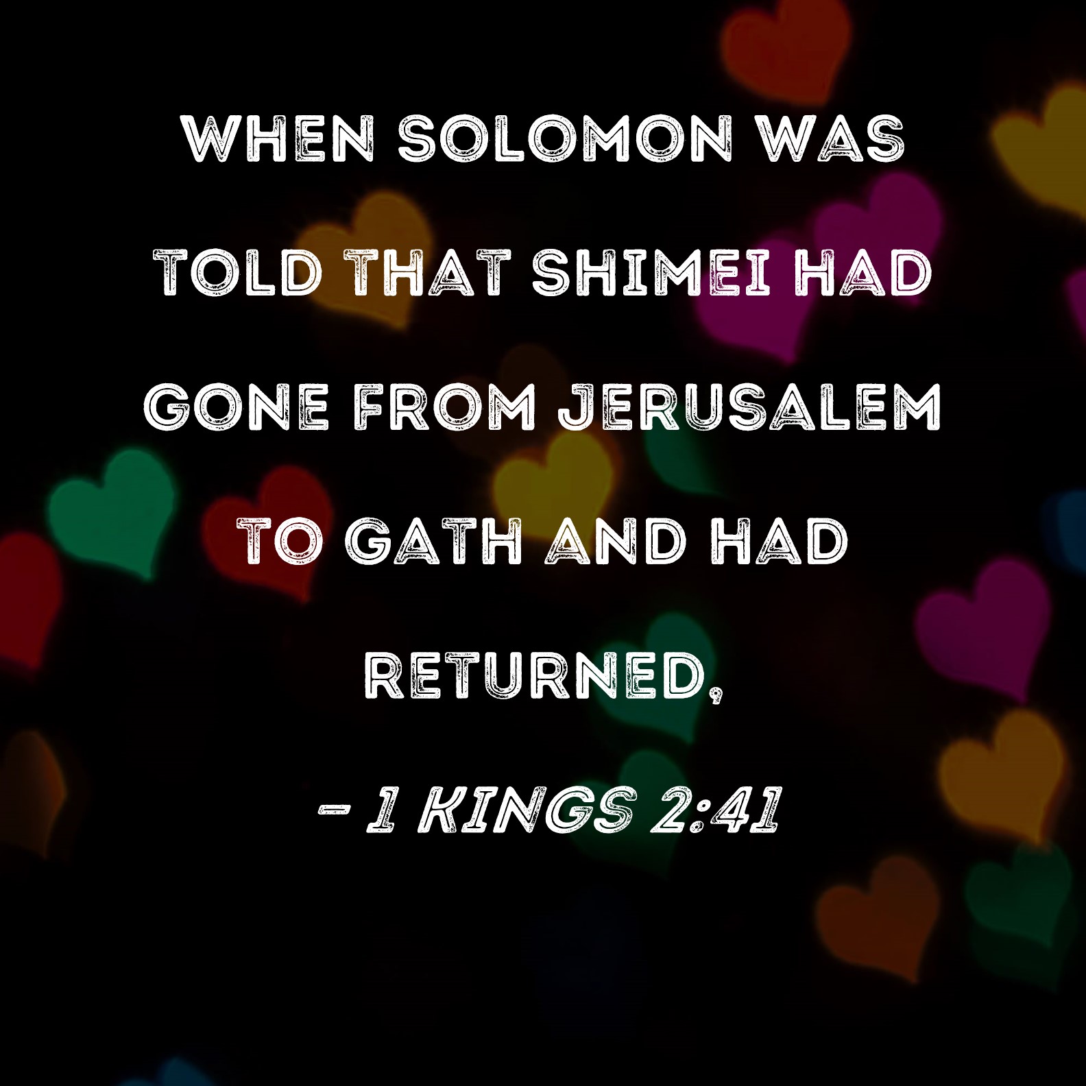 1 Kings 2:41 When Solomon was told that Shimei had gone from Jerusalem to Gath and had returned,