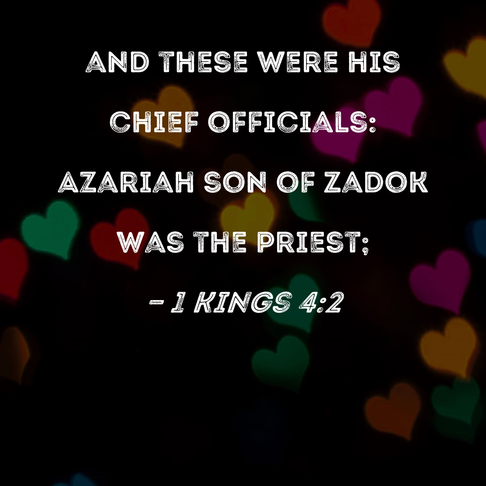 1 Kings 4:2 and these were his chief officials: Azariah son of Zadok was the priest;