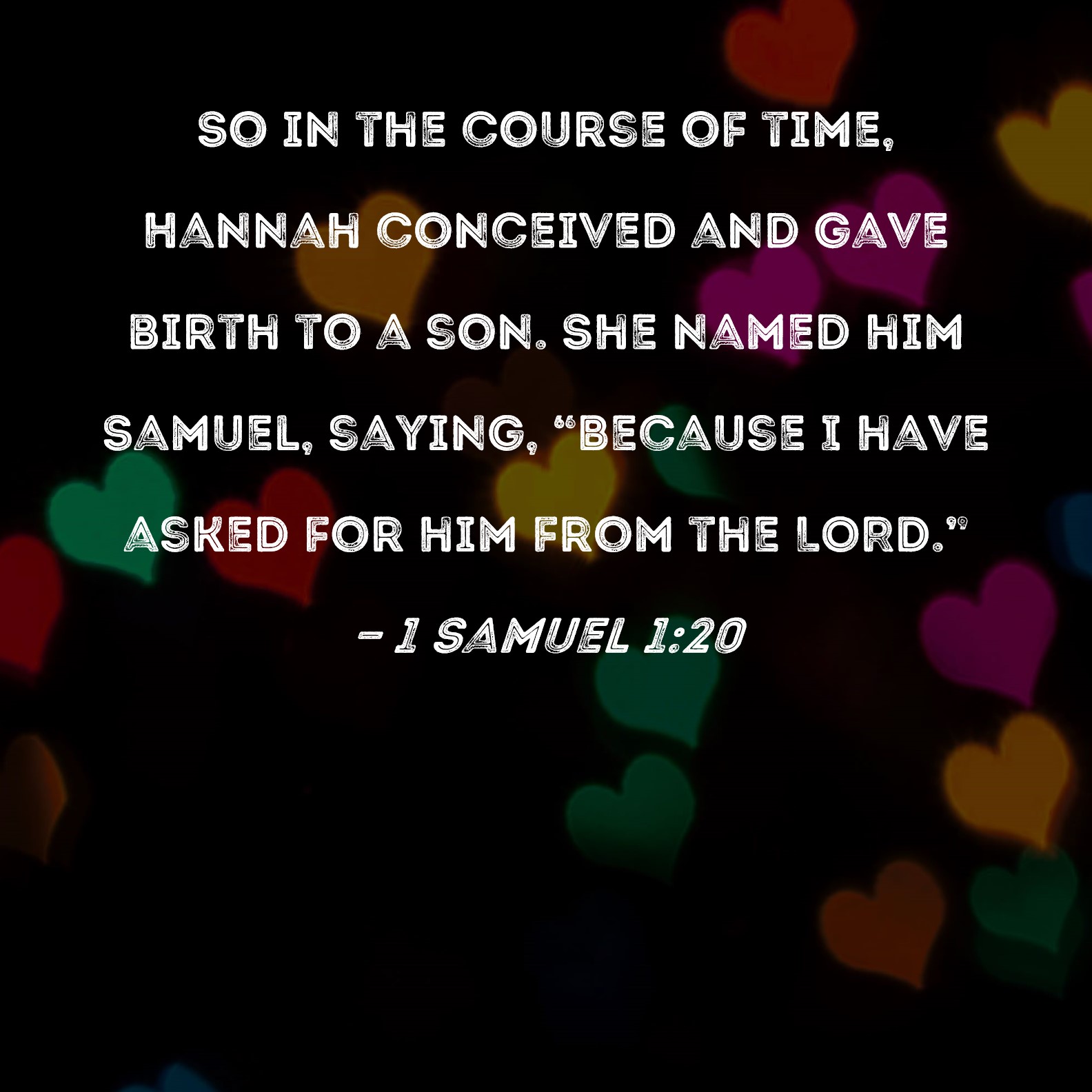 1 Samuel 1:20 So in the course of time, Hannah conceived and gave birth to a son. She named him Samuel, saying, "Because I have asked for him from the LORD."