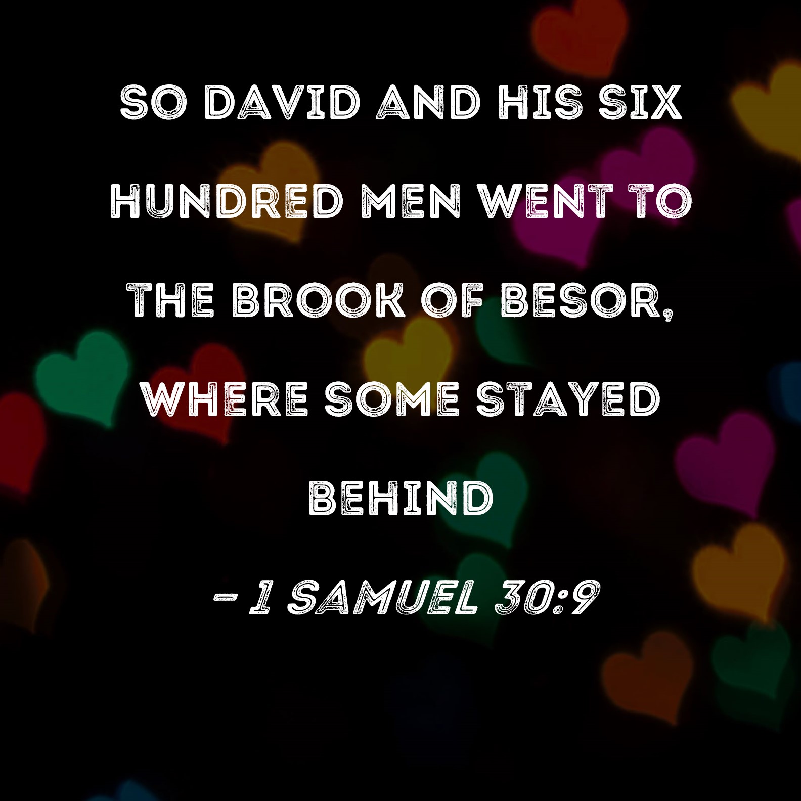 1 Samuel 30:9 So David and his six hundred men went to the Brook of Besor, where some stayed behind