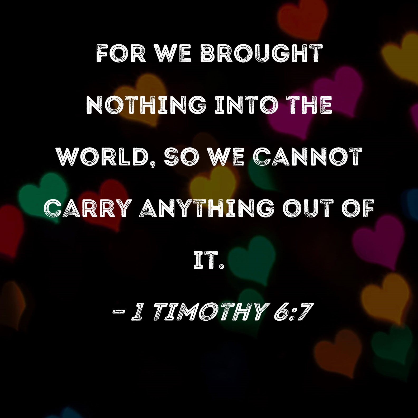 1 Timothy 6:7 For we brought nothing into the world, so we cannot carry anything out of it.