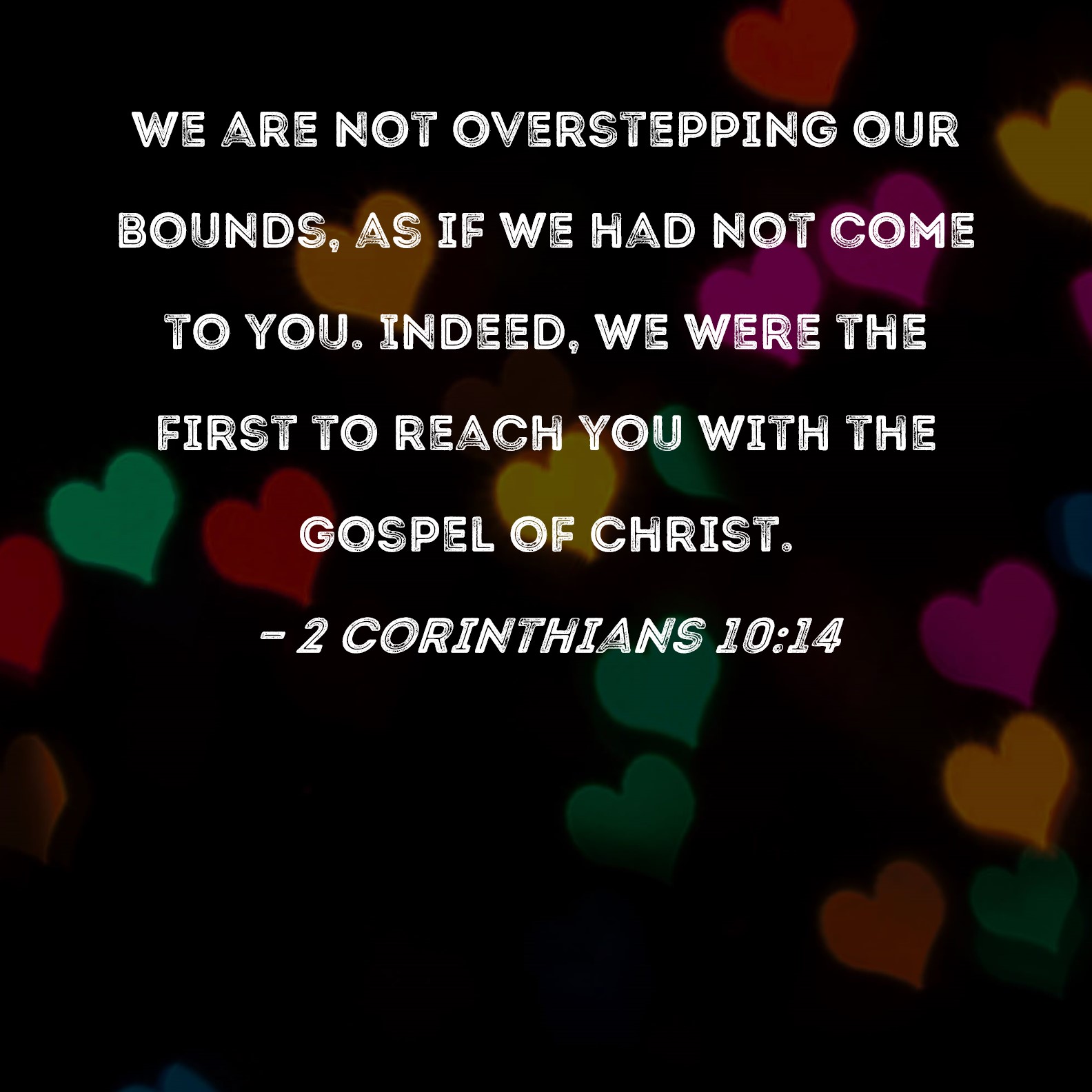2 Corinthians 10:14 We are not overstepping our bounds, as if we had not come to you. Indeed, we were the first to reach you with the gospel of Christ.