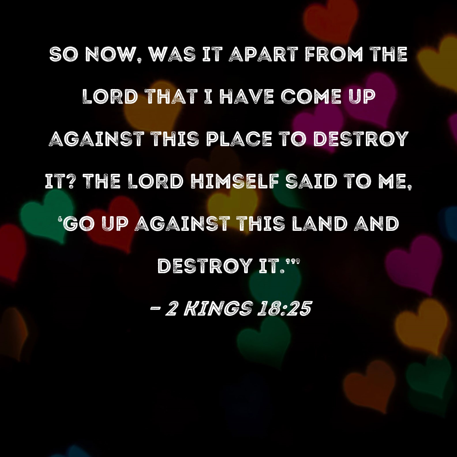 2 Kings 18:25 So now, was it apart from the LORD that I have come up against this place to destroy it? The LORD Himself said to me, 'Go up against this land and destroy it.'"