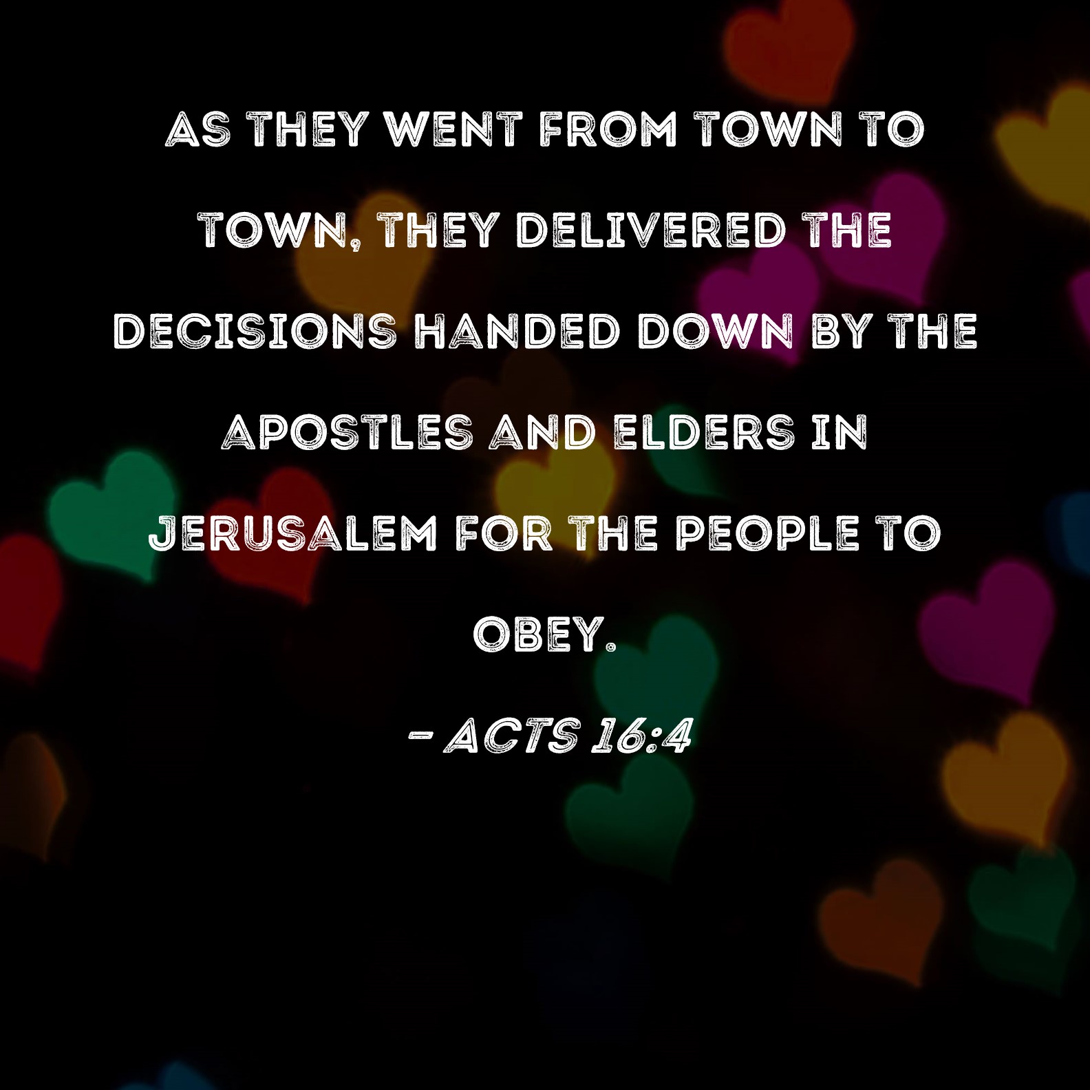 Acts 16:4 As they went from town to town, they delivered the decisions handed down by the apostles and elders in Jerusalem for the people to obey.