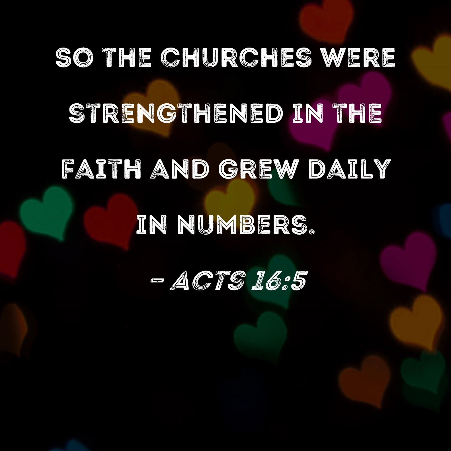 Acts 16:5 So the churches were strengthened in the faith and grew daily in numbers.