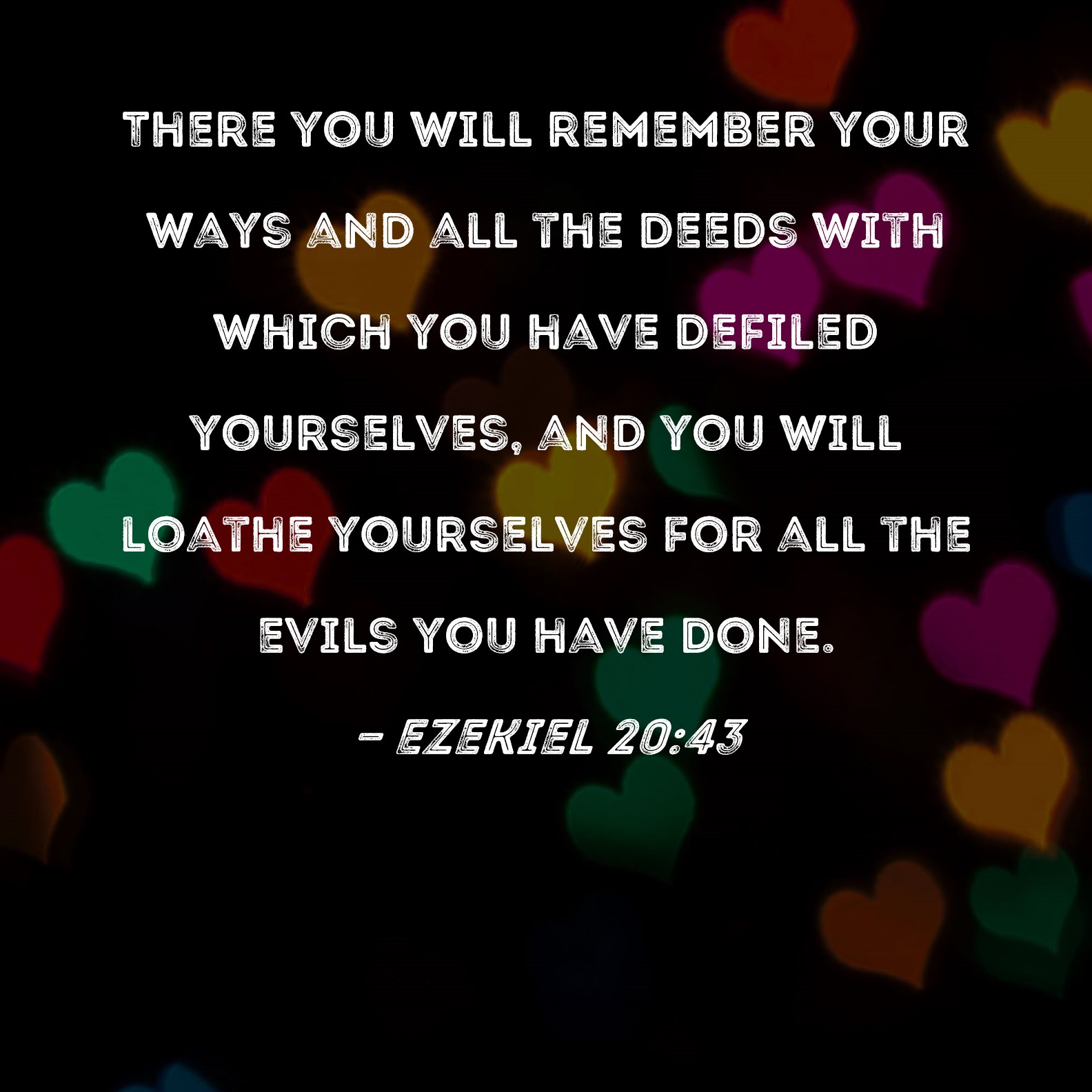 Ezekiel 20:43 There you will remember your ways and all the deeds with which you have defiled yourselves, and you will loathe yourselves for all the evils you have done.