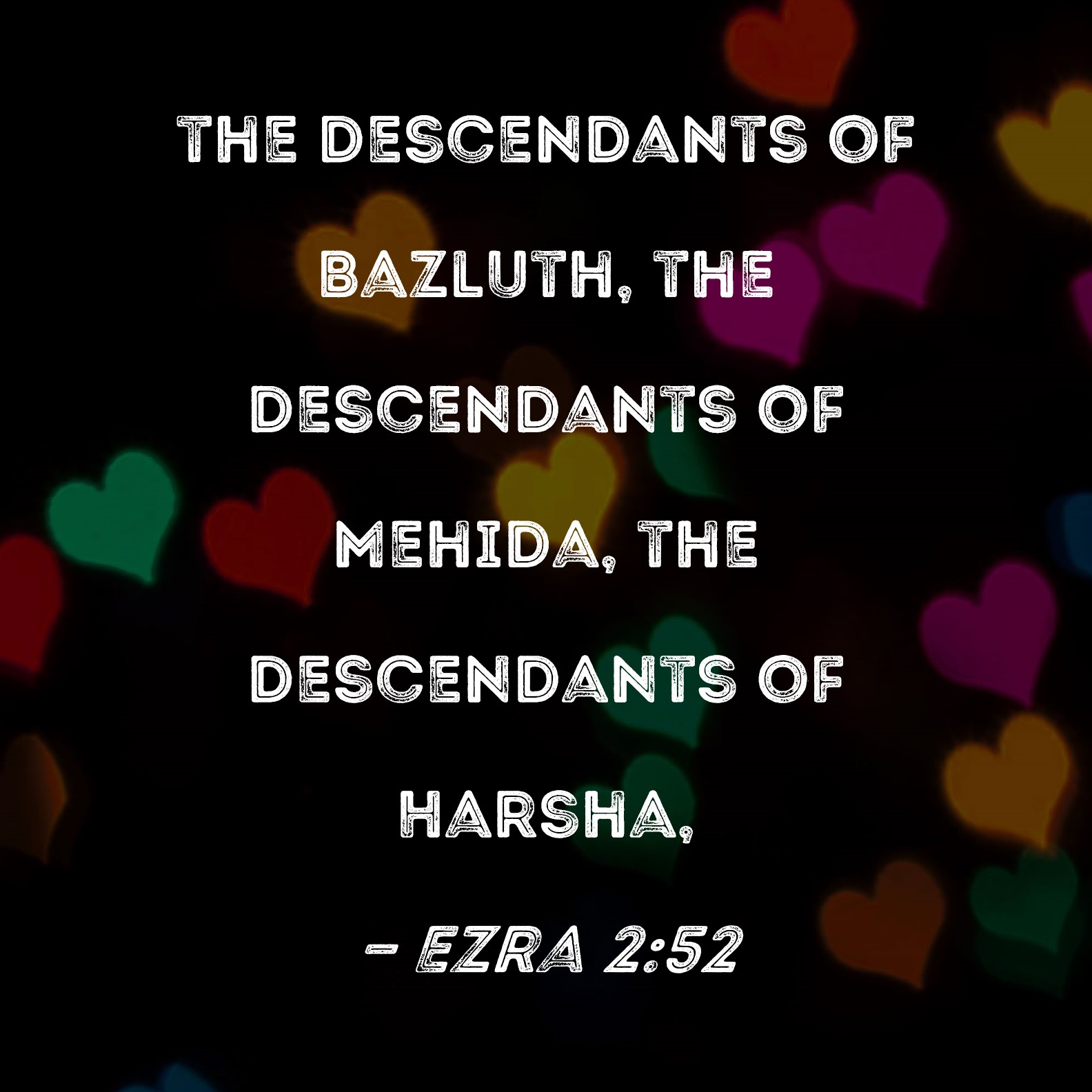Ezra 2:52 the descendants of Bazluth, the descendants of Mehida, the descendants of Harsha,