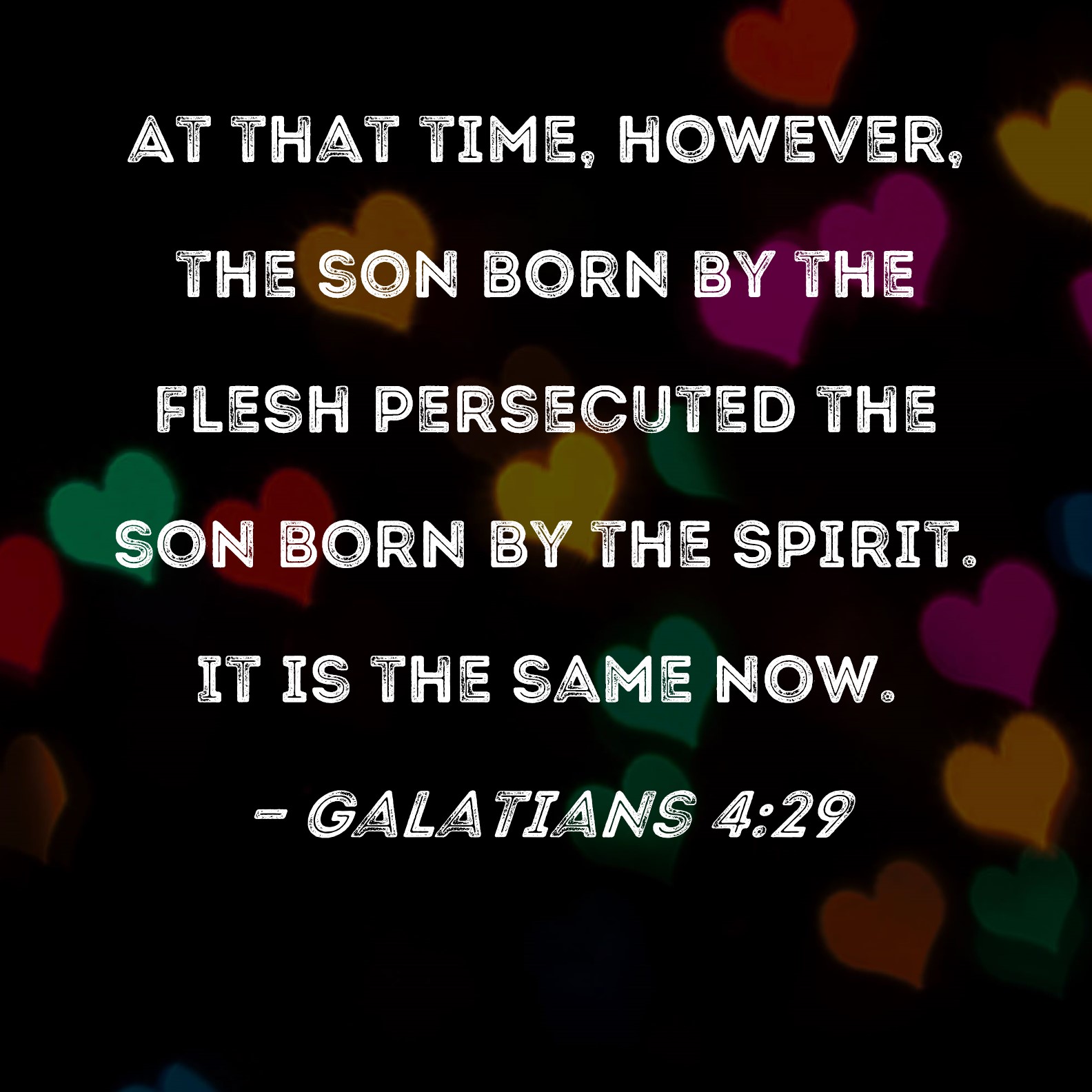 Galatians 4:29 At that time, however, the son born by the flesh persecuted the son born by the Spirit. It is the same now.