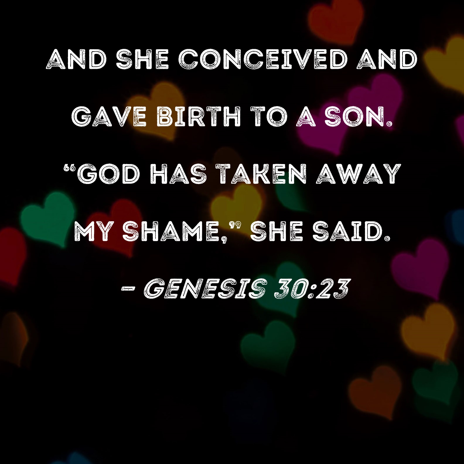 Genesis 30:23 and she conceived and gave birth to a son. "God has taken away my shame," she said.