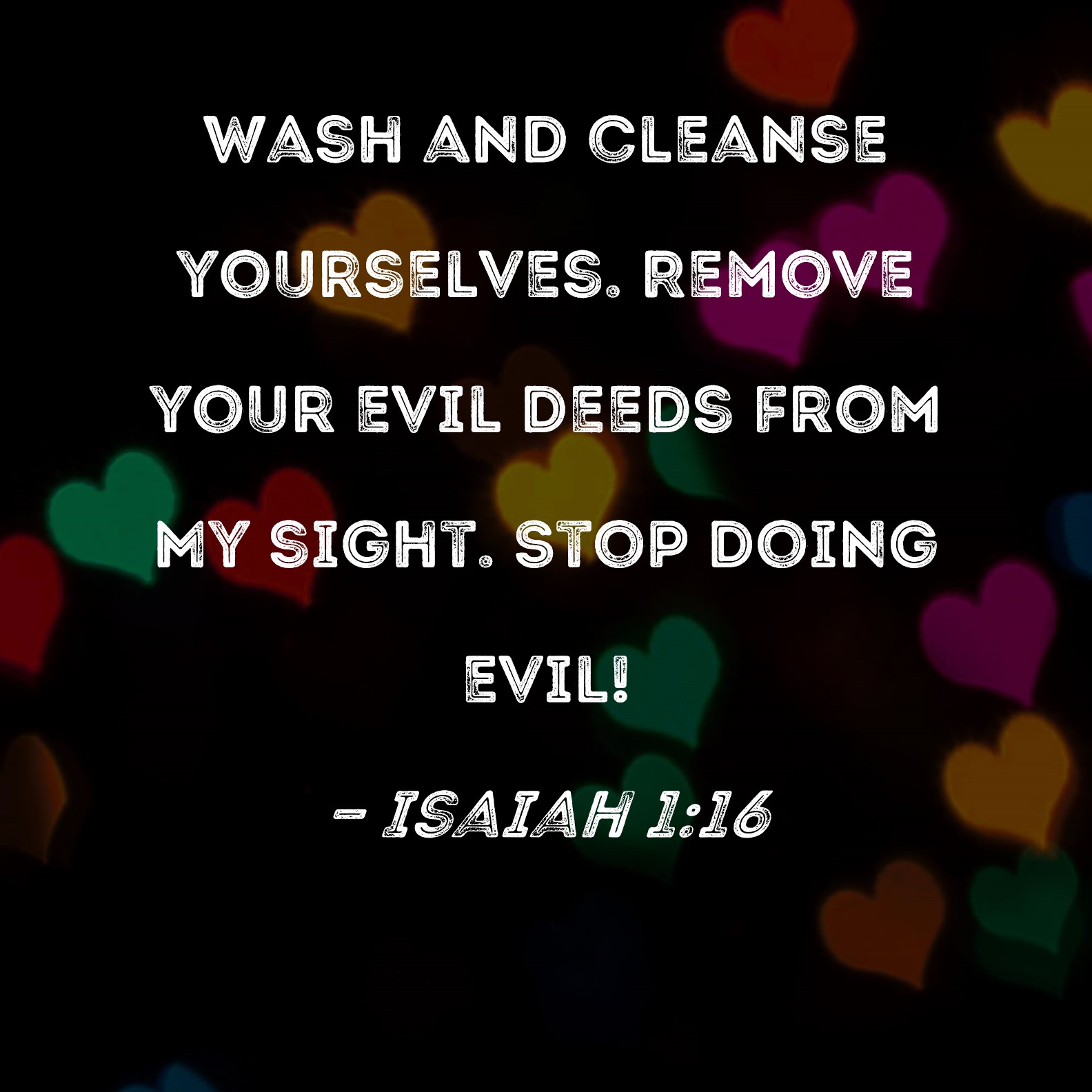 Isaiah 1:16 Wash and cleanse yourselves. Remove your evil deeds from My sight. Stop doing evil!