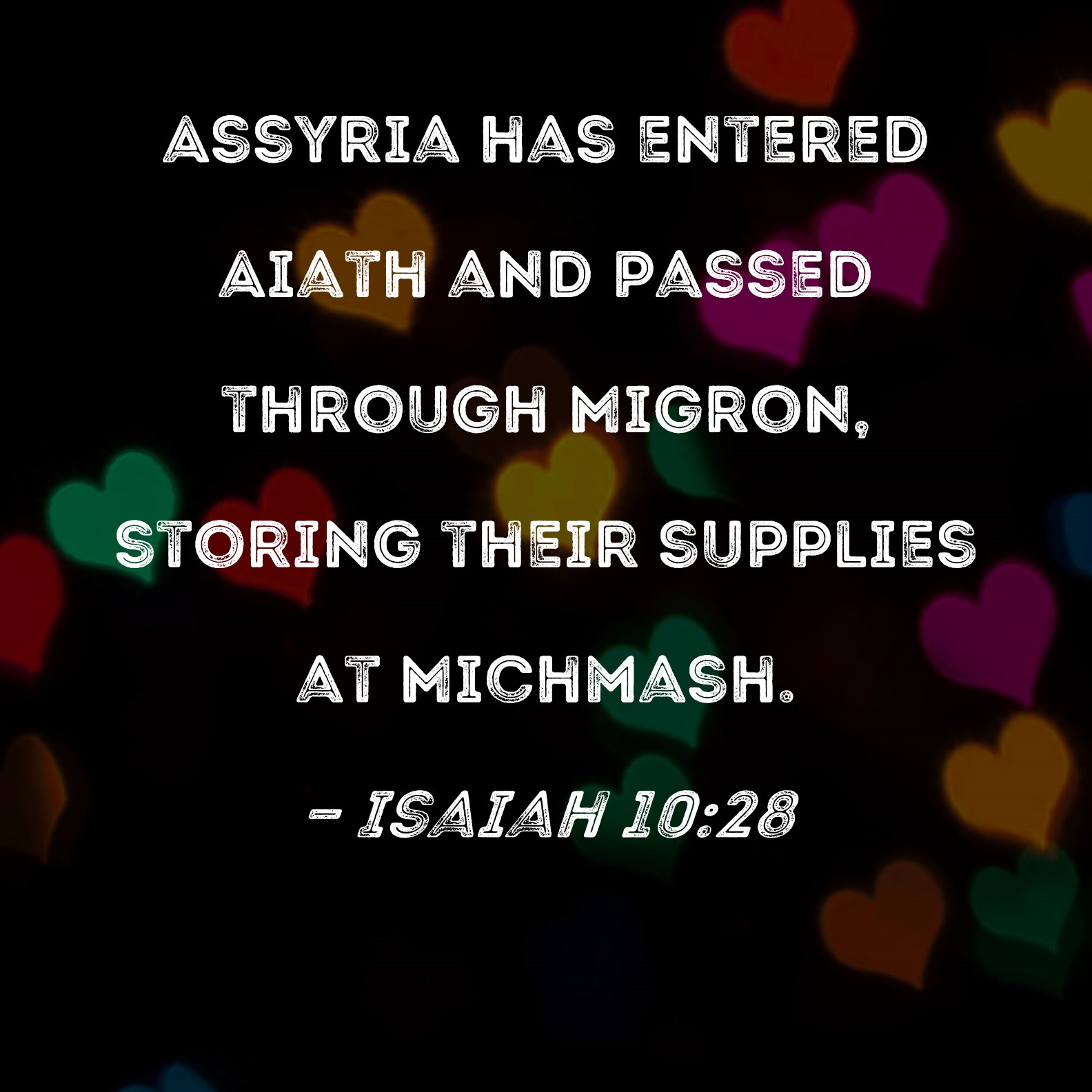 Isaiah 10:28 Assyria has entered Aiath and passed through Migron, storing their supplies at Michmash.