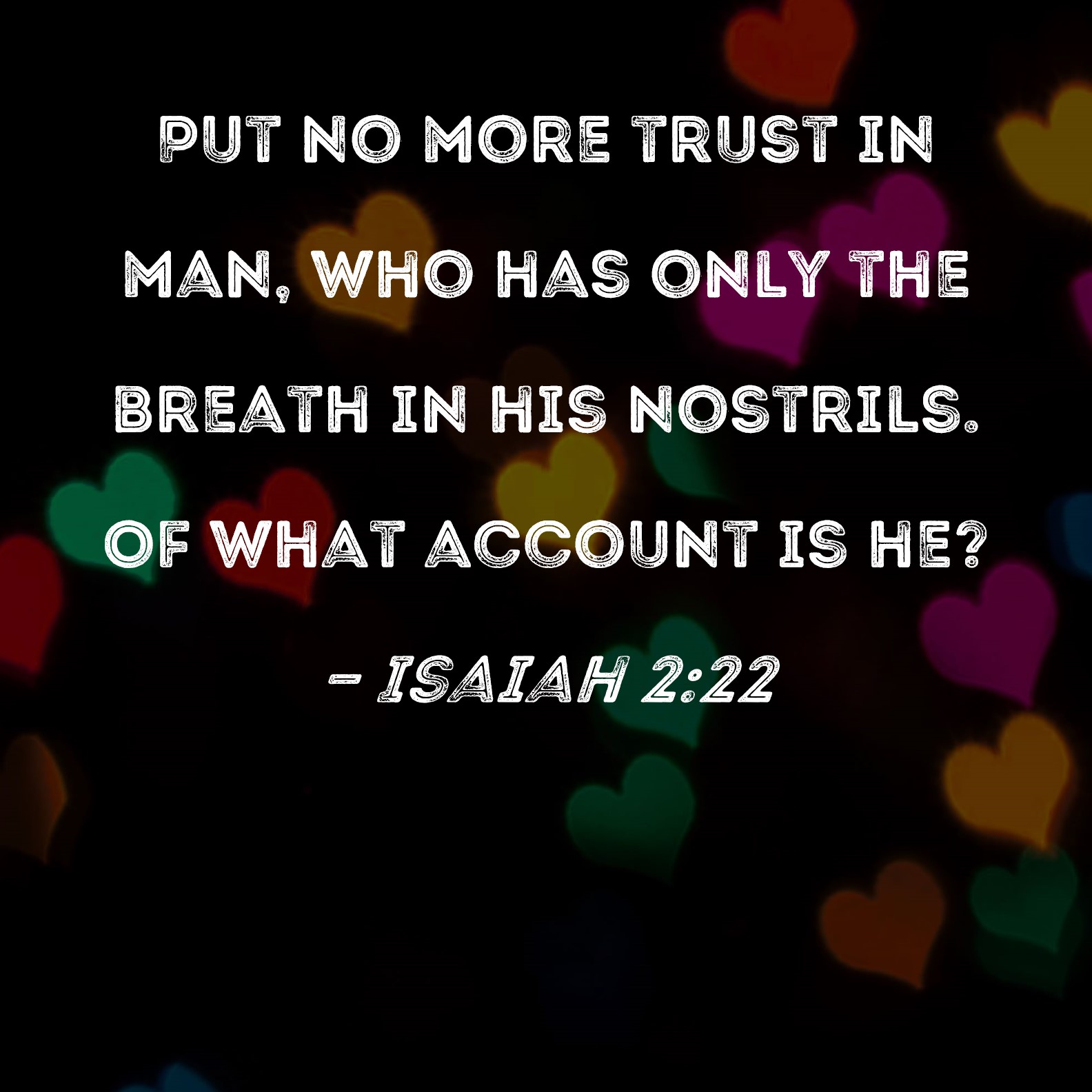 Isaiah 2:22 Put no more trust in man, who has only the breath in his nostrils. Of what account is he?