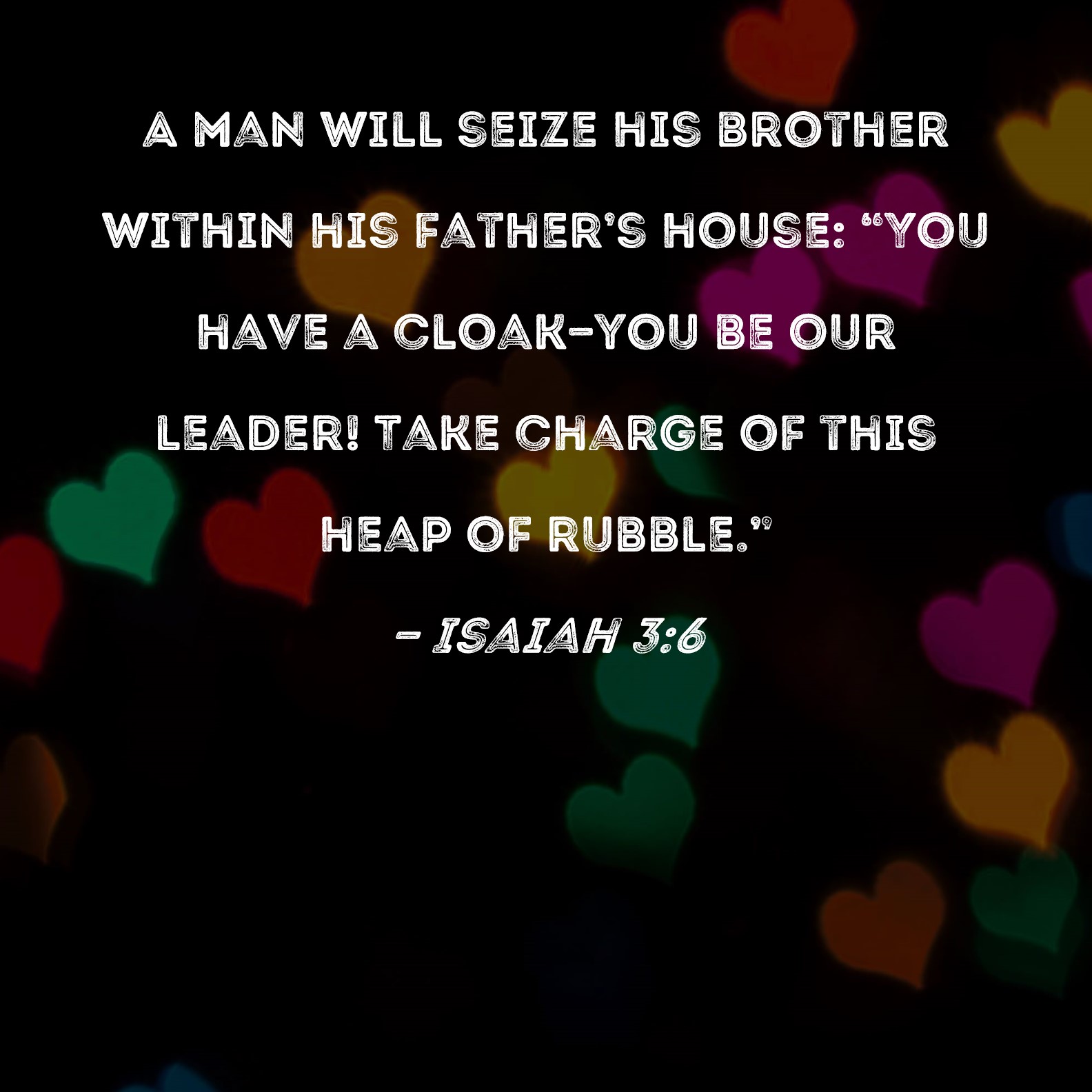 Isaiah 3:6 A man will seize his brother within his father's house: "You have a cloak--you be our leader! Take charge of this heap of rubble."