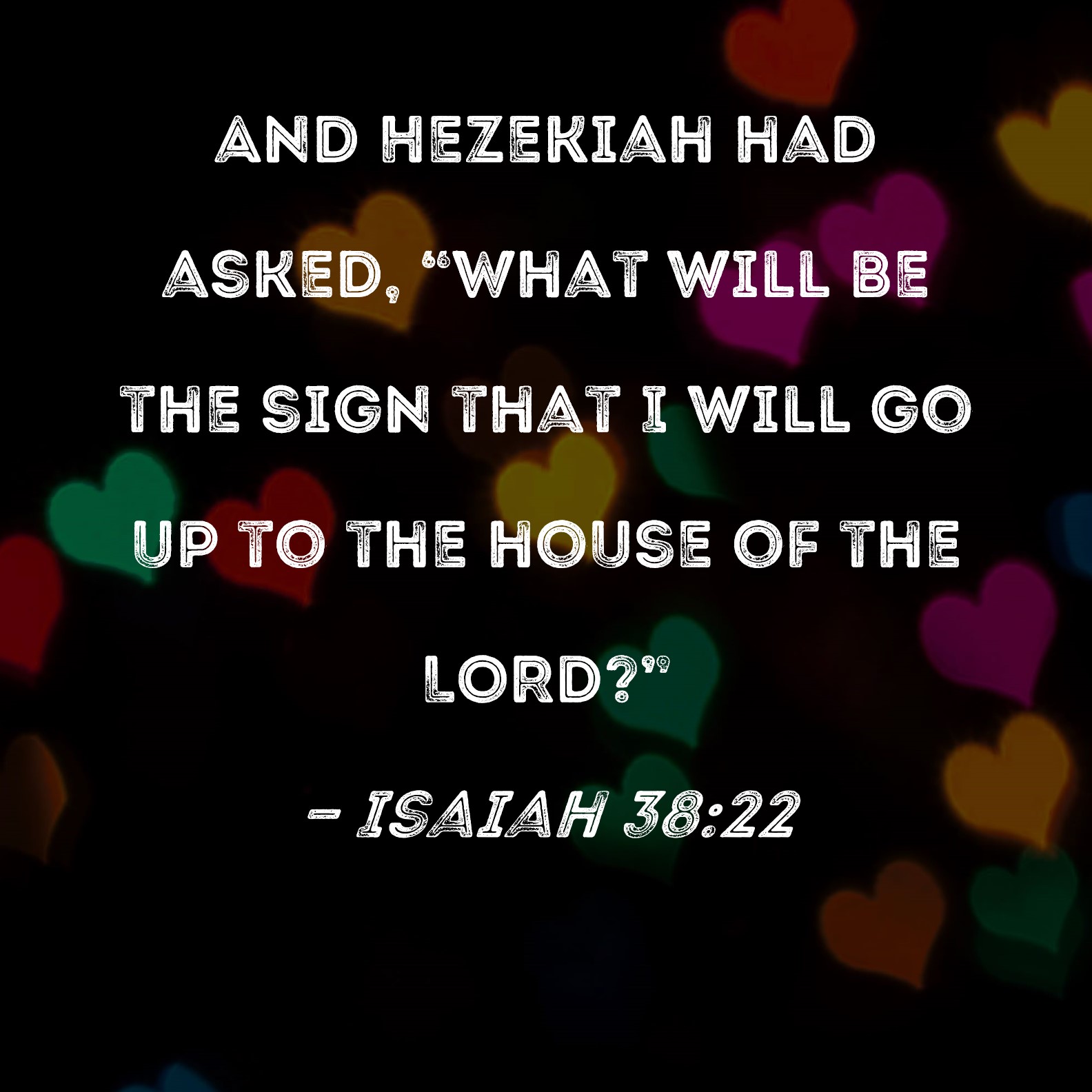 Isaiah 38:22 And Hezekiah had asked, "What will be the sign that I will go up to the house of the LORD?"
