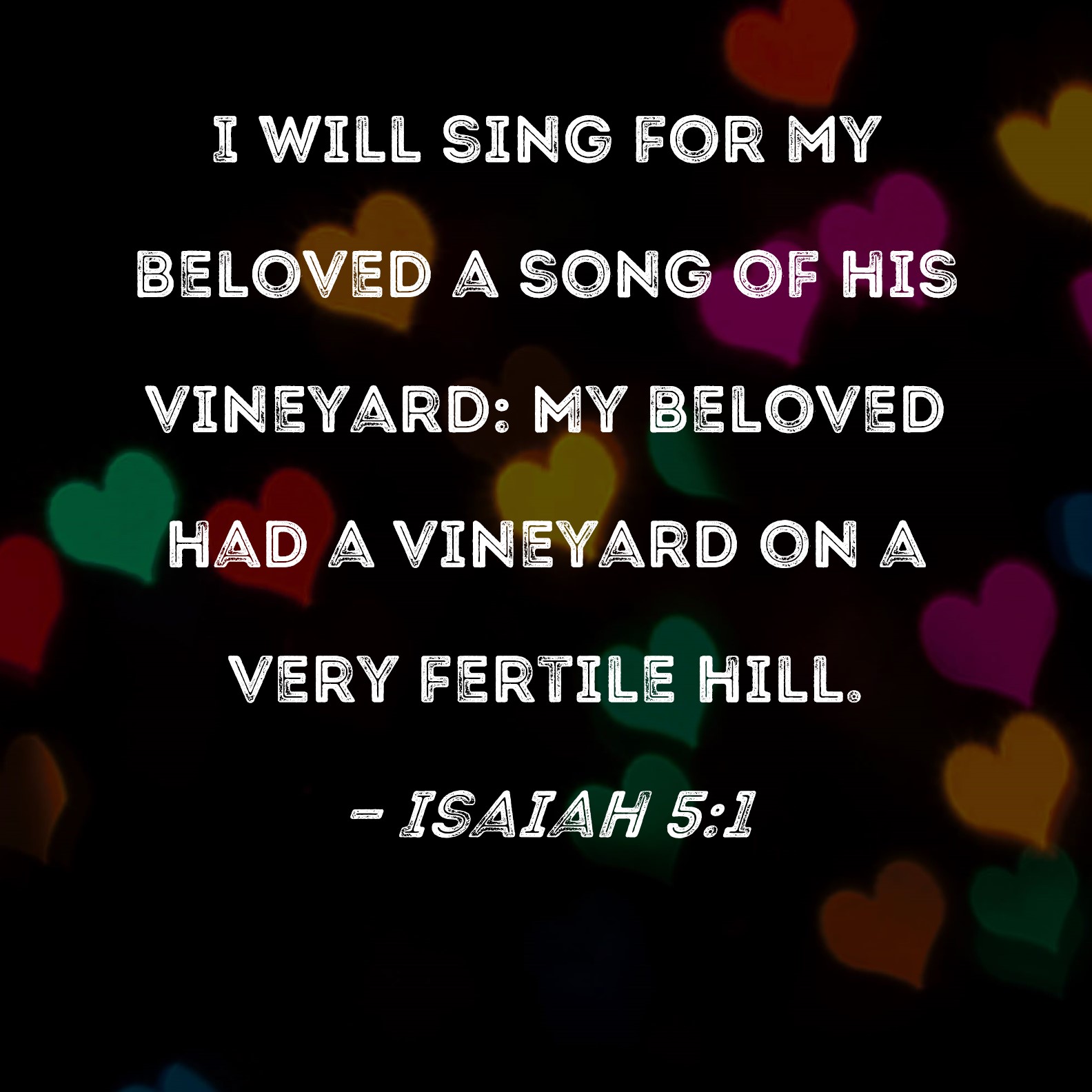Isaiah 5:1 I will sing for my beloved a song of his vineyard: My beloved had a vineyard on a very fertile hill.