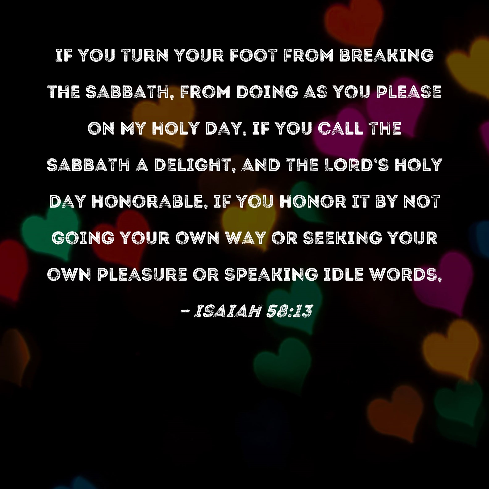 Isaiah 58:13 If you turn your foot from breaking the Sabbath, from doing as you please on My holy day, if you call the Sabbath a delight, and the LORD's holy day honorable, if you honor it by not going your own way or seeking your own pleasure or speaking idle words,