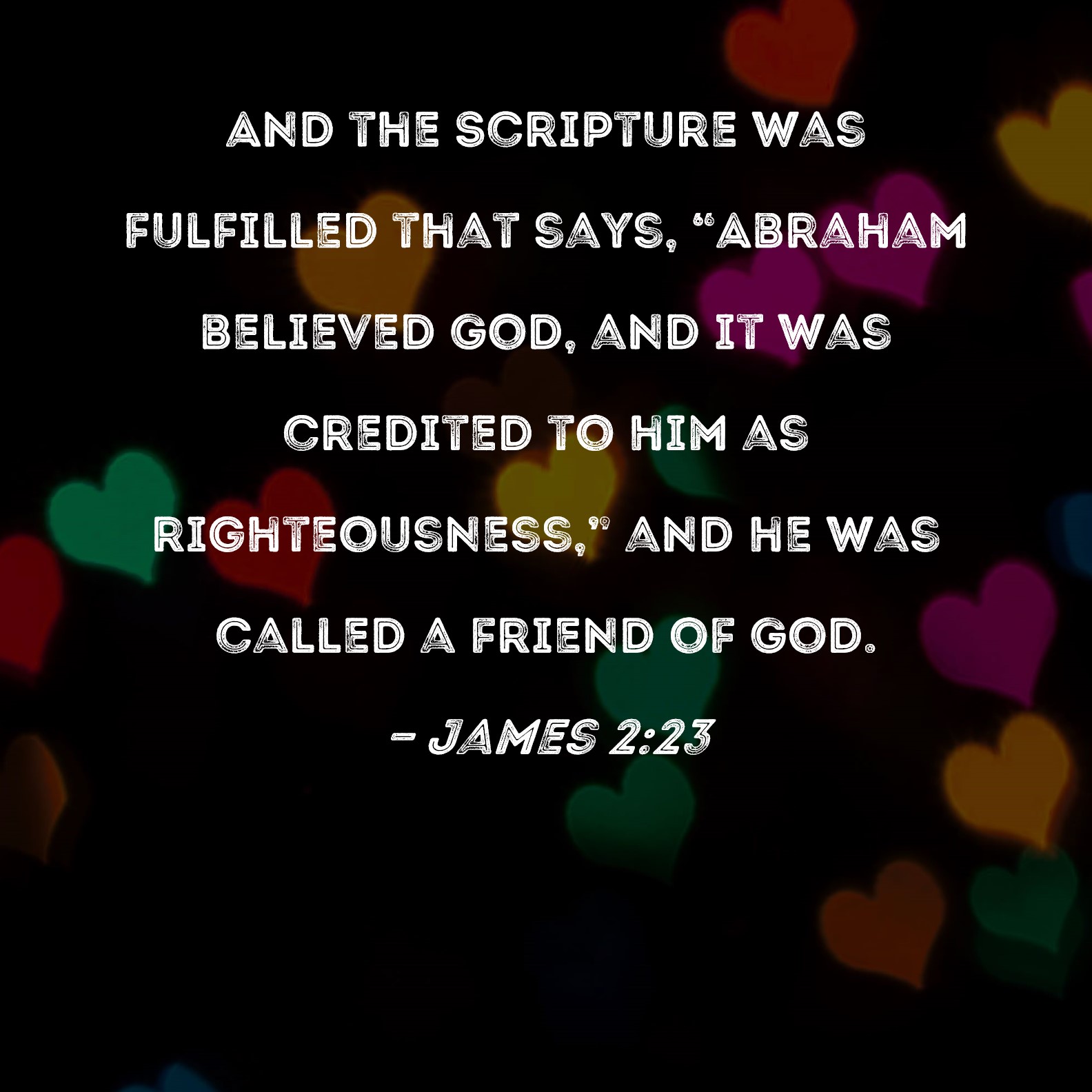 James 2:23 And the Scripture was fulfilled that says, "Abraham believed God, and it was credited to him as righteousness," and he was called a friend of God.